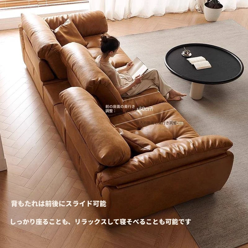 移動可能な背もたれ付き、中古風オイルワックスレザーの雲のようなソファ。小さなリビングにぴったりな一流牛革製の本革ソファ。快適さとスタイルを兼ね備えた、あなたの生活空間を彩るアイテムです!