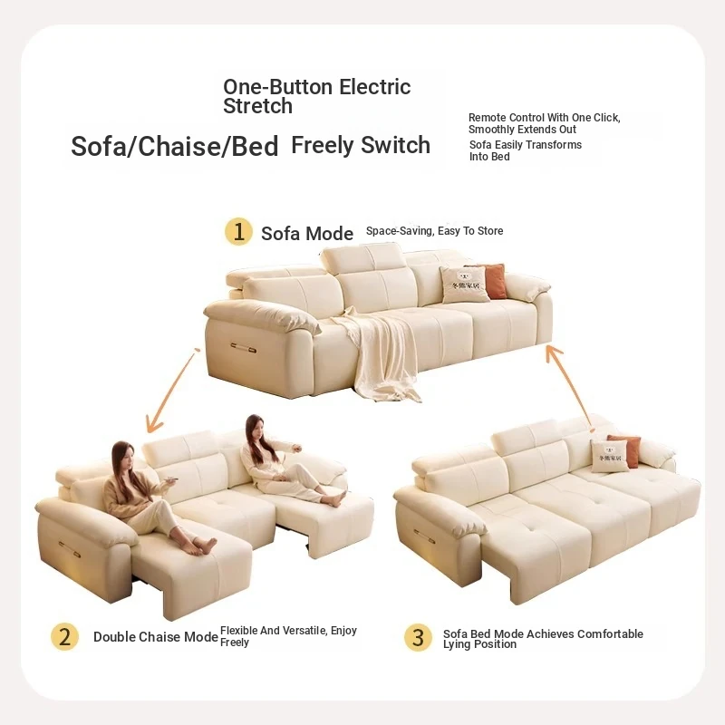 Winter Bear French Cream Electric Sofa Bed - Versatile & Space-Saving Adjustable Leather Sofa for Small Living Rooms, Perfect for Wall Placement