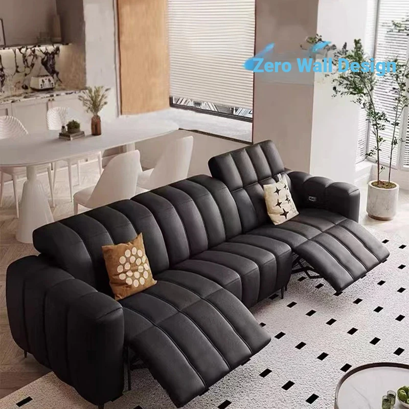 Zero Wall Multi-Functional Electric Sofa - Luxurious Top-Grain Leather Italian Minimalist Design for Your Living Room, Sleek and Space-Saving Real Leather Sofa