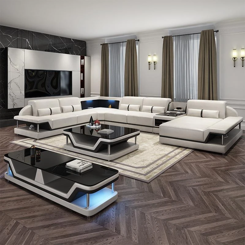 Luxurious Modern European Genuine Leather LED Sofa Set – Elevate Your Living Space with Style and Comfort!