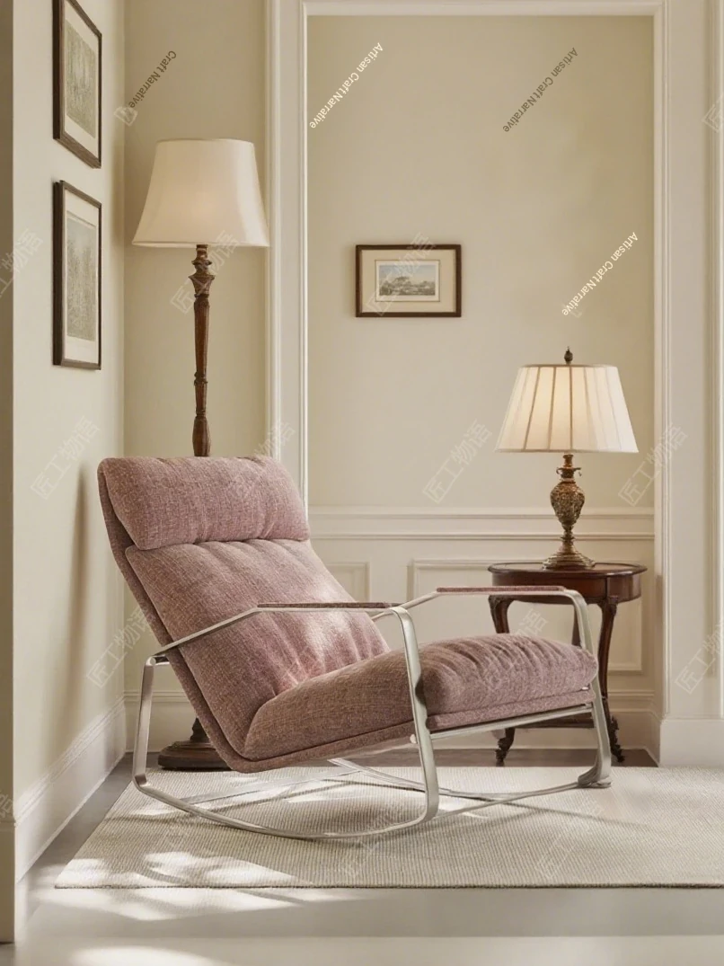 Modern Luxury Stainless Steel Single Sofa Chair - Stylish Fabric Lounge Rocking Chair for Bedroom, Living Room, Hotels, and B&Bs