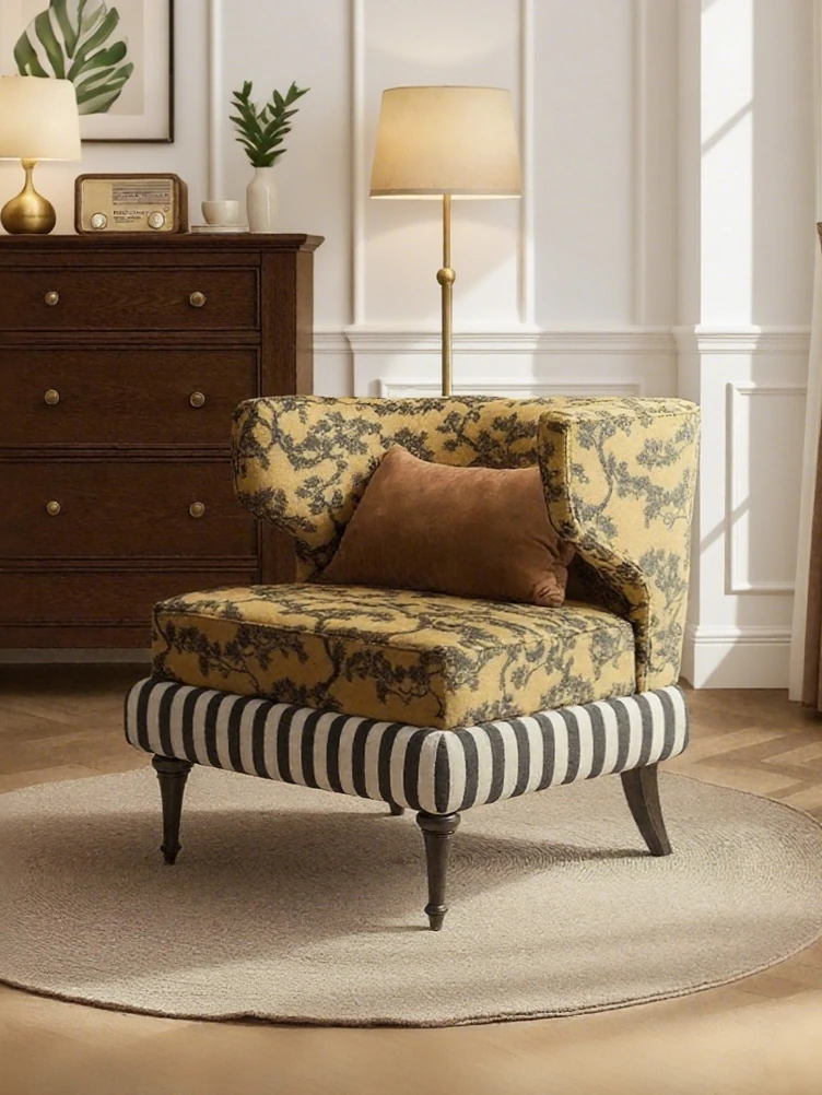 Charming Vintage French-Style Single Leisure Sofa Chair for Hotel and Guesthouse - Perfect for Balconies and Living Rooms