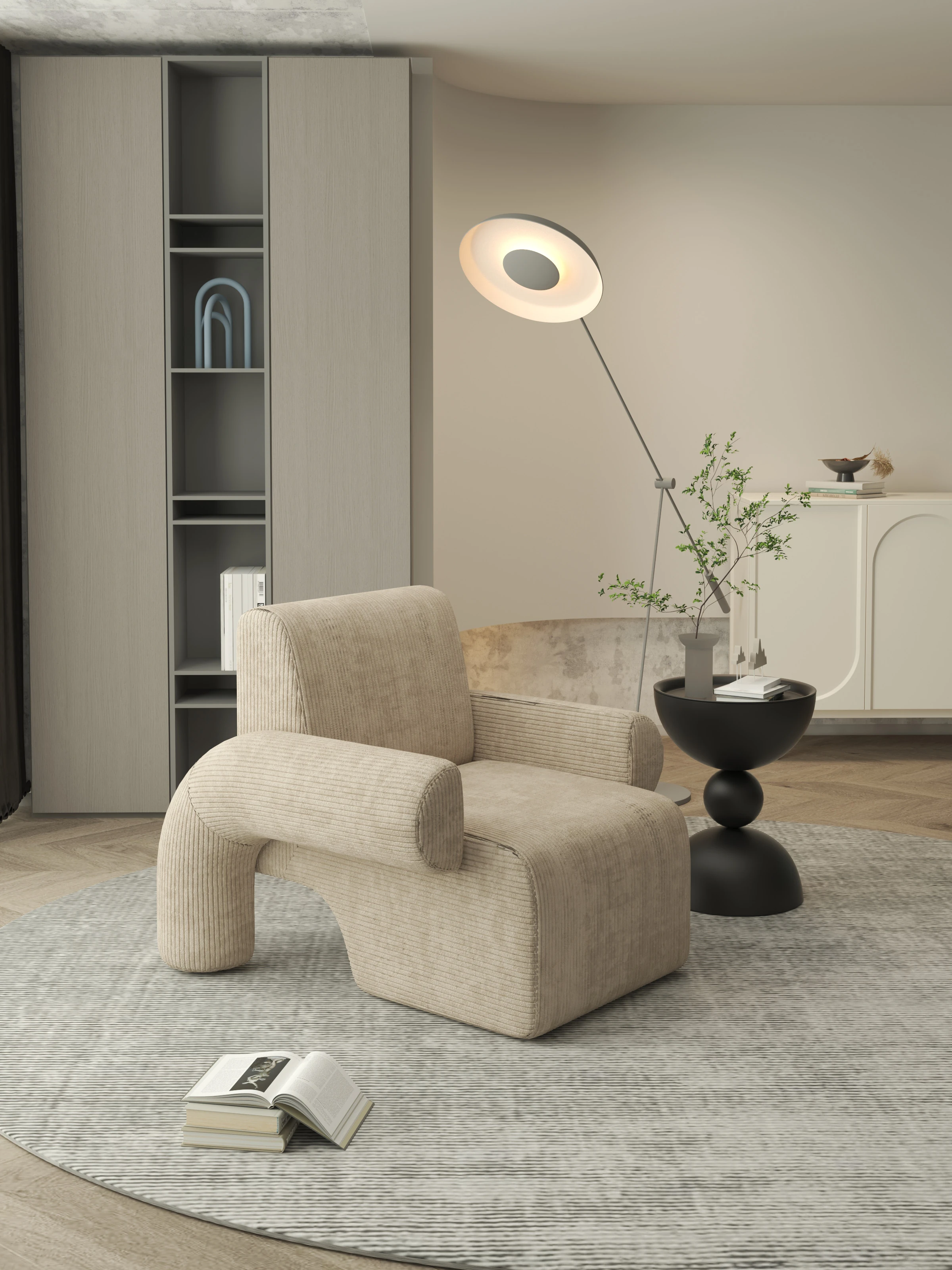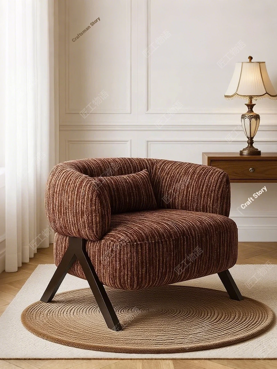 Luxury Italian Minimalist Long Plush Single Sofa Chair - Designer Elegant Recliner, Modern Simple Leisure Backrest Chair