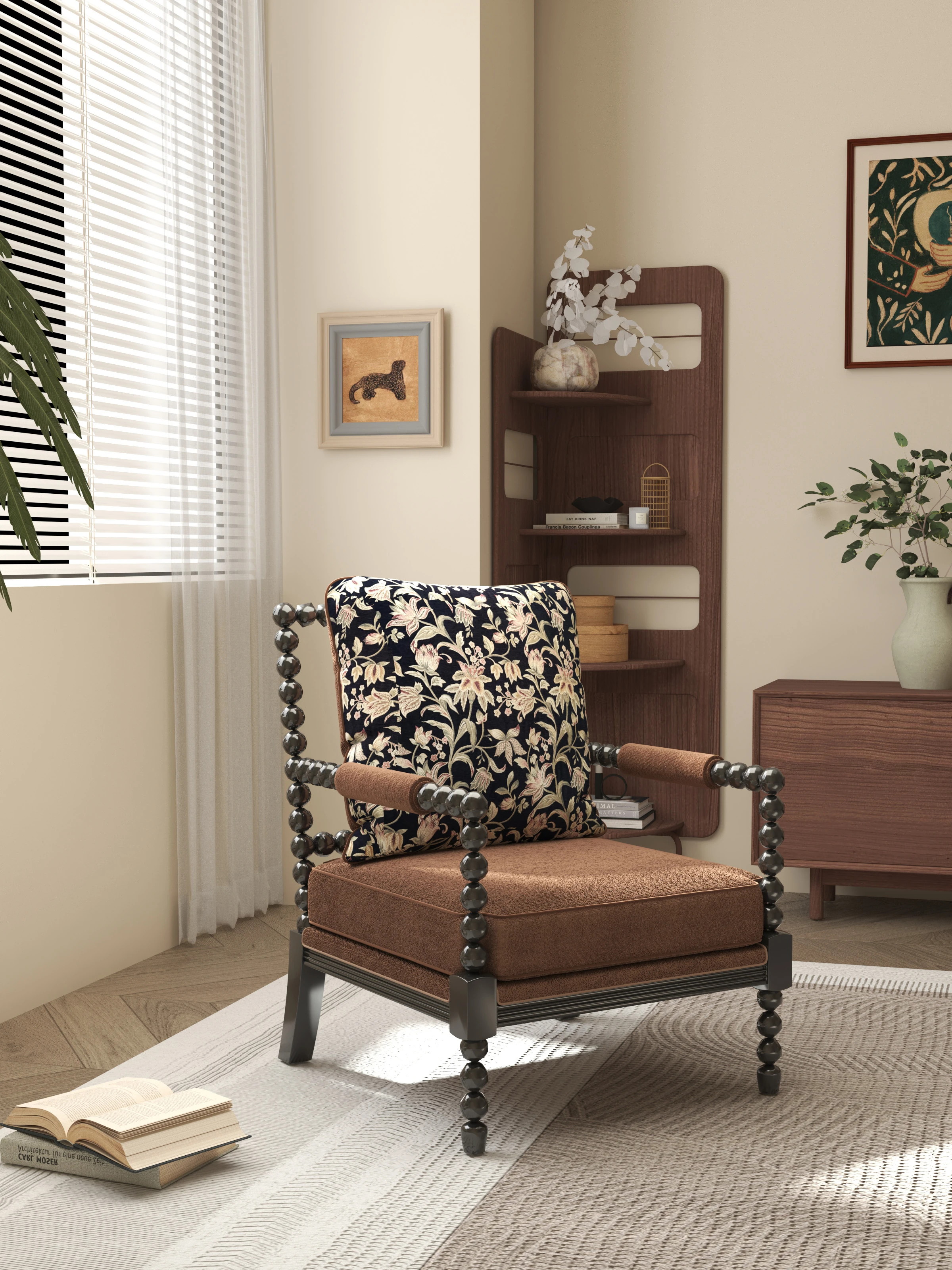 Vintage-Inspired Solid Wood Armchair for Living Room – Elegant French Retro Design, Luxurious Upholstered Accent Chair, Perfect for Adding Charm to Your Home Décor.