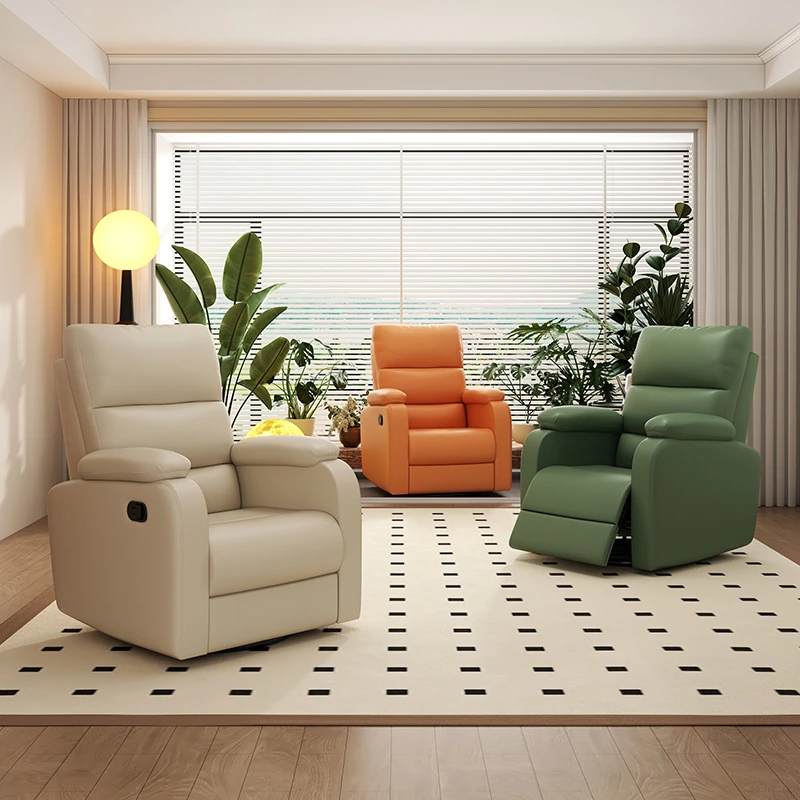 Versatile Cream Reclining Single Sofa Chair - Perfect for Living Room or Bedroom, Rocking Chair Style, Ideal for Relaxation and Napping, Space-Saving Lazy Sofa
