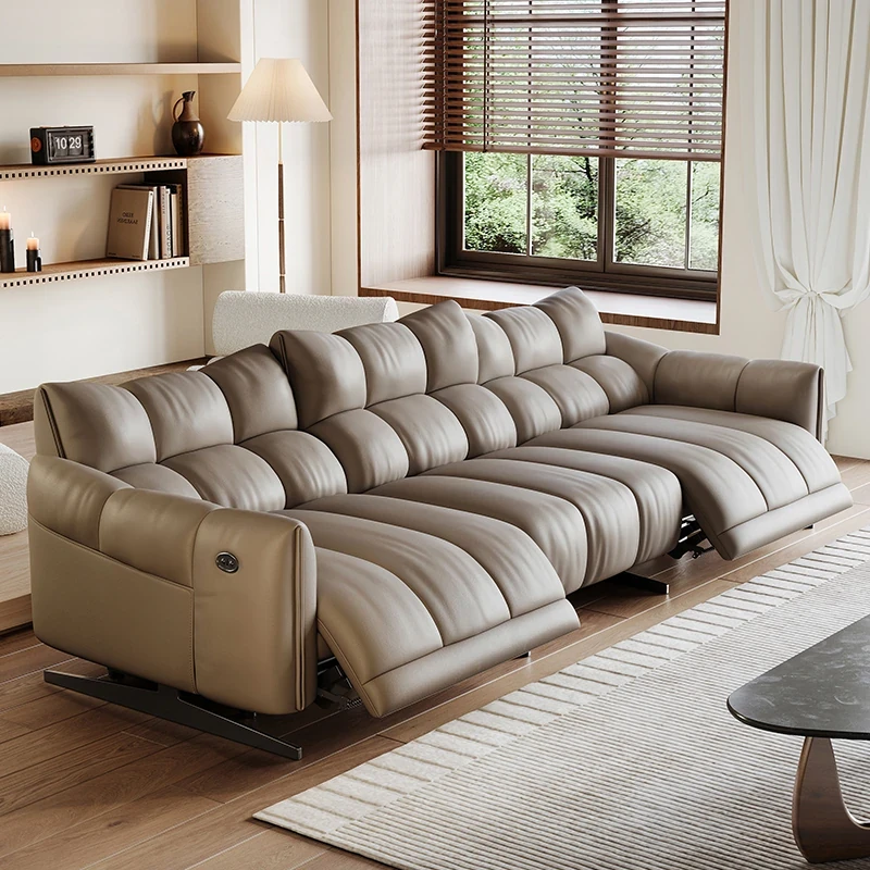壁に寄りかからない電動機能付き本革ソファ - イタリアン軽奢スタイル、上質なトップグレイン牛革使用、シンプルでモダンなスペースにぴったりのソファ。快適さと洗練されたデザインを実現!