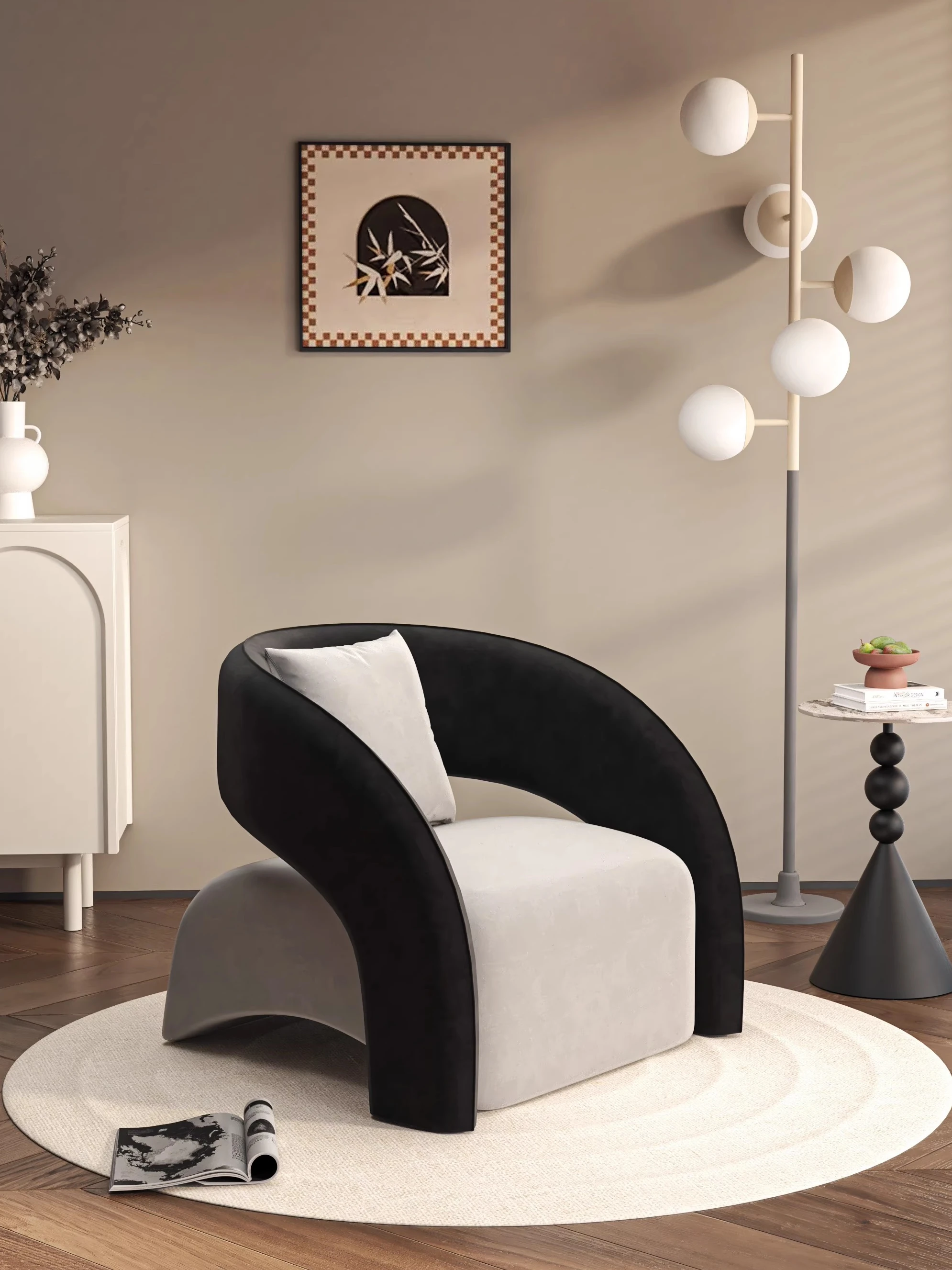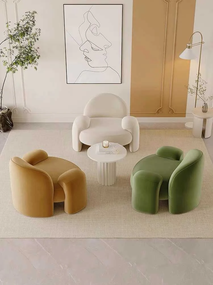 おしゃれな民宿や美容院にぴったり!北欧スタイルの一人掛けソファ、リビングのくつろぎスペースを演出。インスタ映えするデザインで、友達との談笑やビジネスミーティングにも最適なアイテムです!