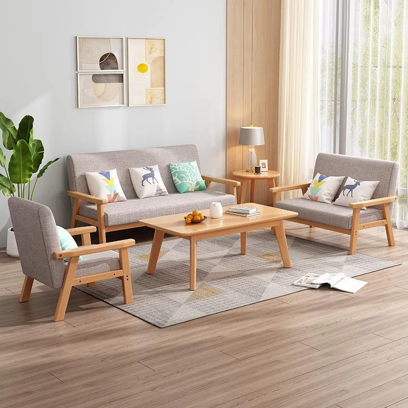 Scandinavian Solid Wood Double Sofa for Small Living Rooms - Modern Minimalist Removable Fabric Couch, Natural Wood Furniture