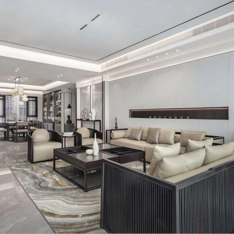 Modern Chinese Style Solid Wood Sofa - Minimalist Design for Home Living Rooms, Spacious Rubber Wood Combination for Offices and Hotel Reception Areas - Perfect for Comfort and Style!