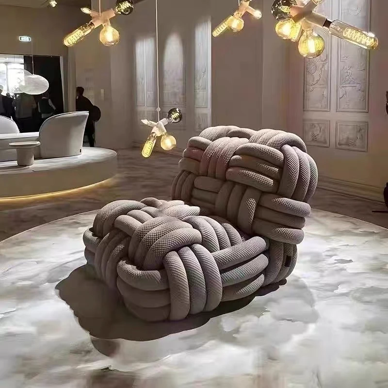 Nordic Knitty Knotted Weave Sofa Chair - Designer Knit Lounge Chair for Living Room and Bedroom, Stylish and Comfortable Lazy Chair