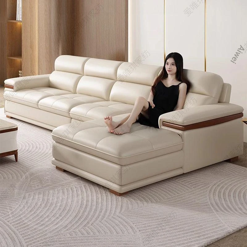 Aiviqi Genuine Leather Sofa - Modern Minimalist Cream Style, Top-Grain Cowhide, Perfect for Any Living Room Size, Luxurious Chaise Lounge Sofa for Elegant Spaces