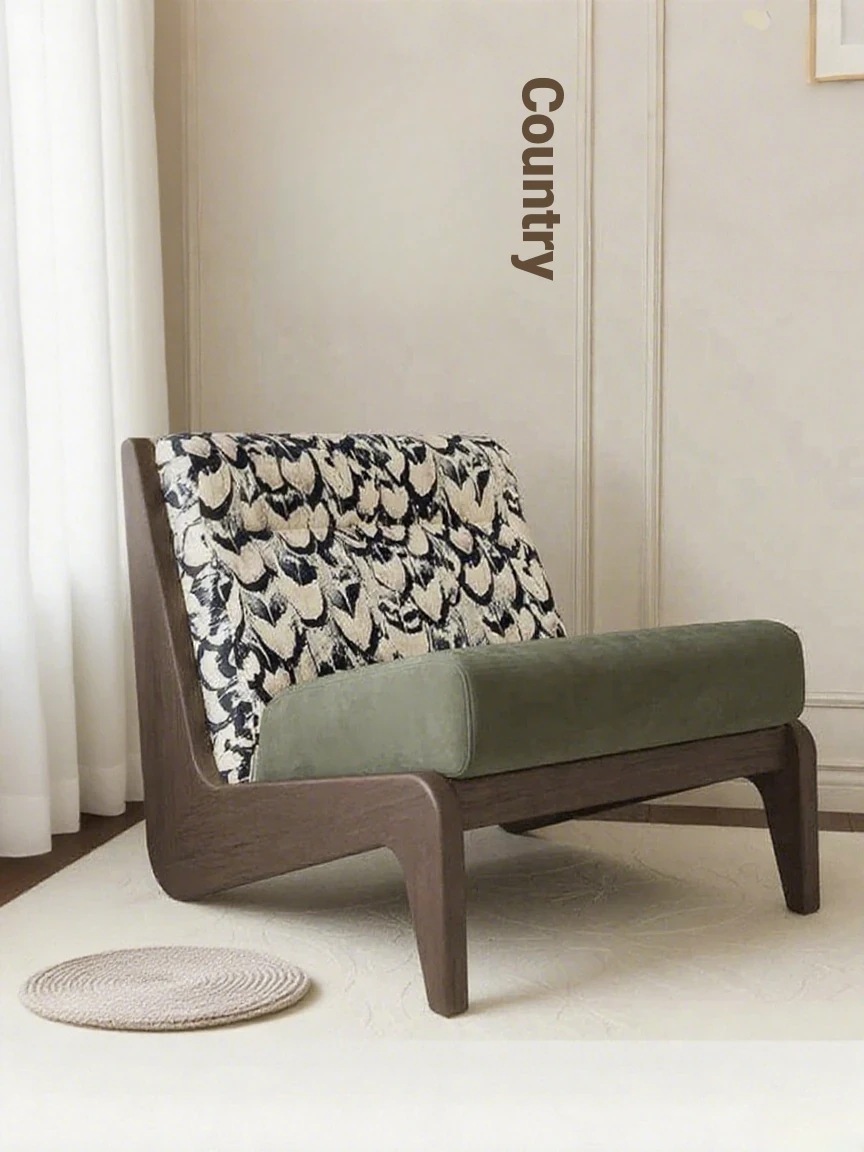 Vintage French-Style Solid Wood Lounge Chair - Designer Single Armchair for Living Room, Perfect for Balcony Relaxation and Leisure.