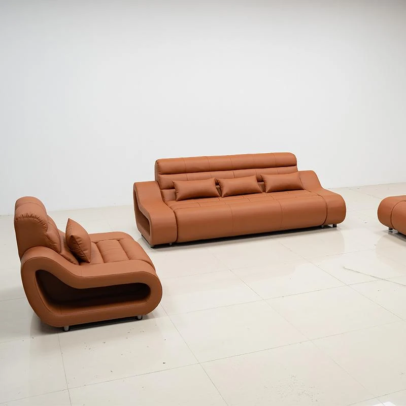 Modern Stylish Leather Sofa Set for Living Room - 1+2 Configuration with Brown Faux Leather and LED Lighting - Perfect for Export and Contemporary Home Decor