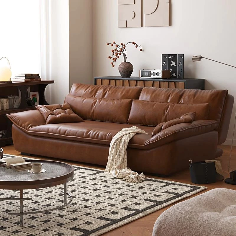 Luxurious French Style Cream-Colored Sofa for Three, Crafted from Premium Top Grain Leather - 2024 Multi-Functional Straight Design for Your Living Room