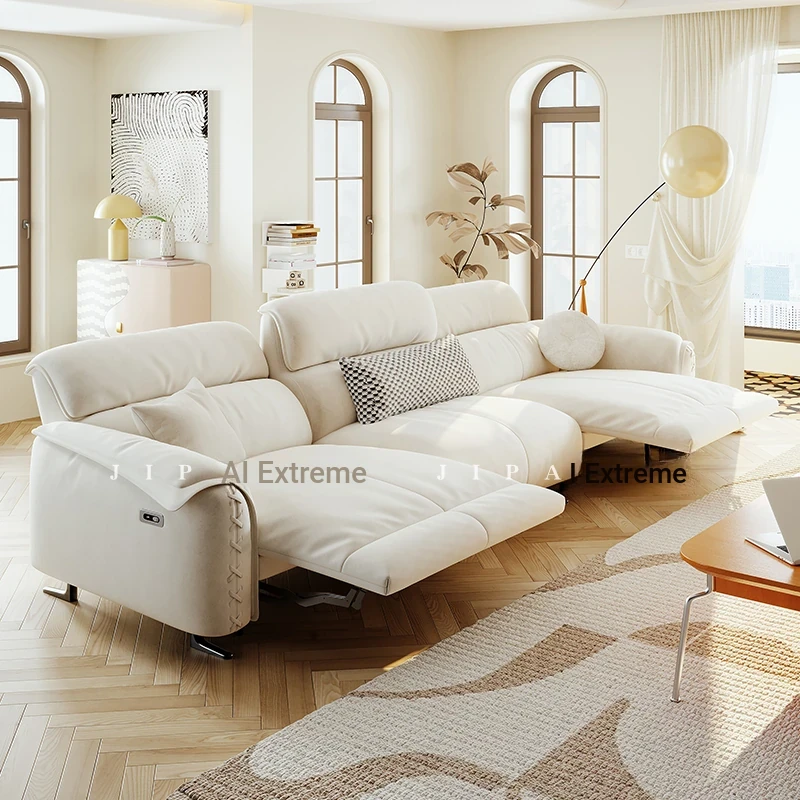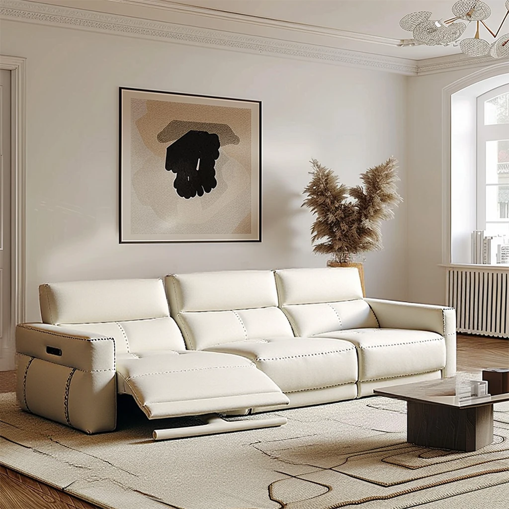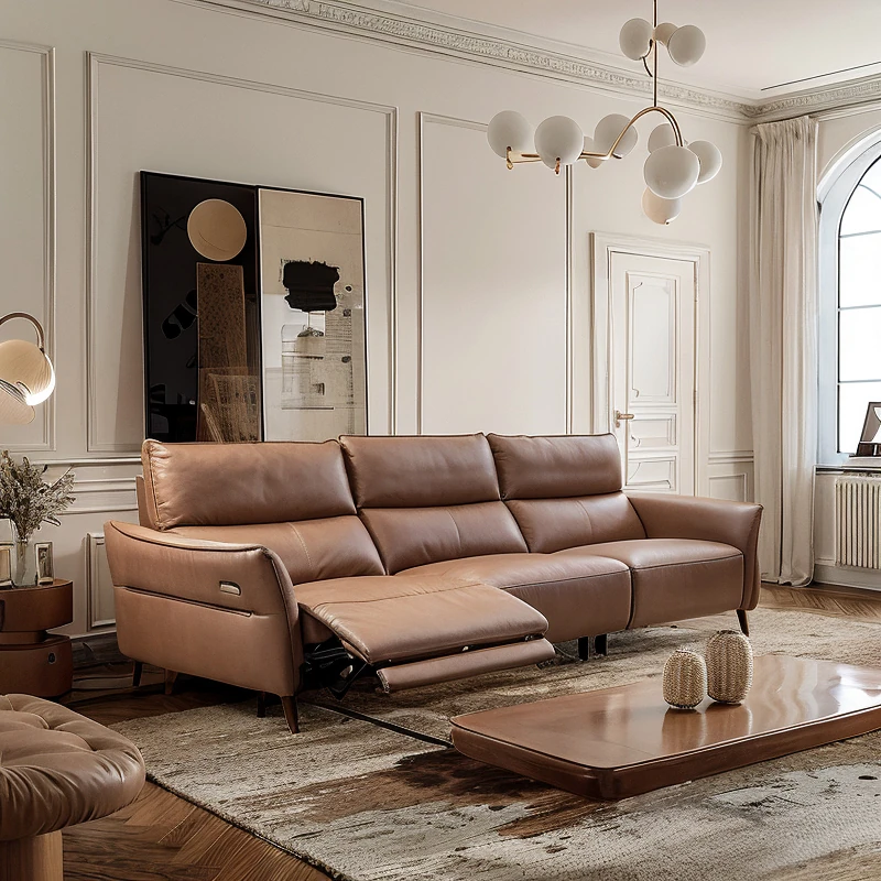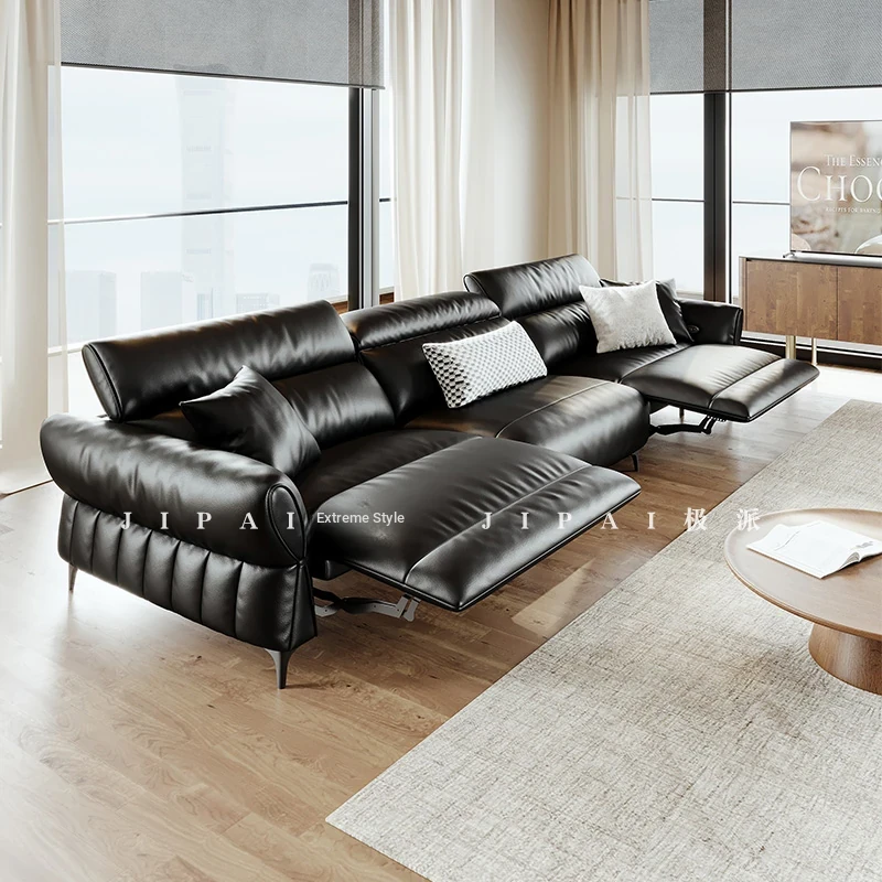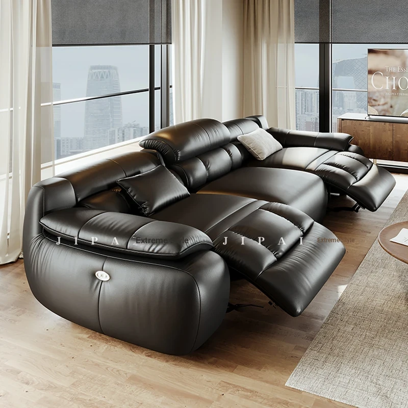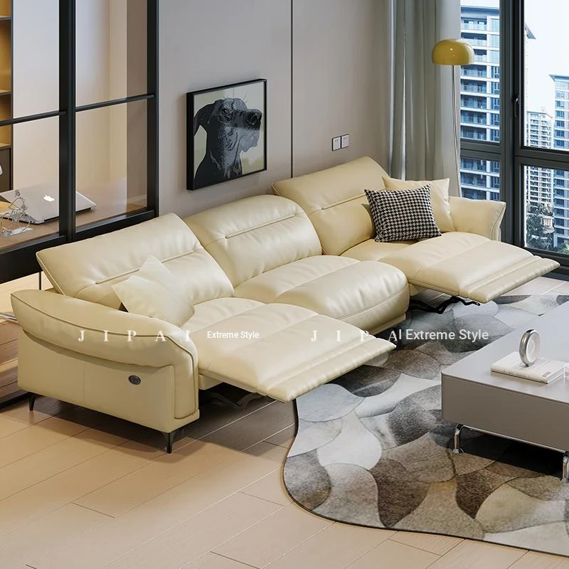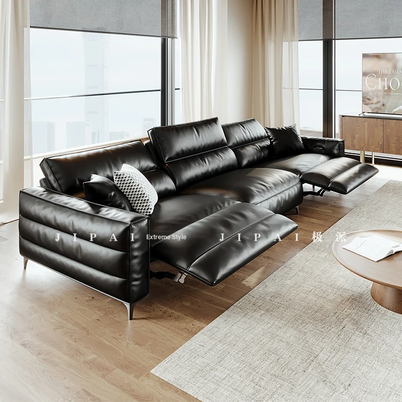 Modern Minimalist Genuine Top-Grain Leather Sofa Set - Adjustable Electric Reclining Sofa for Living Room, Wall-Free Configuration