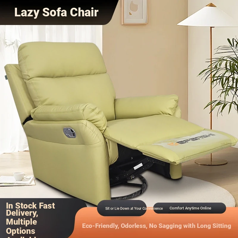 Genuine Leather Reclining Space Capsule Sofa - Premium Single Lazy Chair for Living Room, Perfect for Napping and Multi-Functional Rotating Balcony Seat