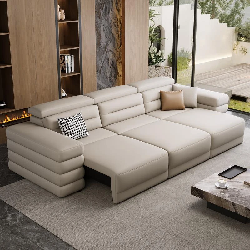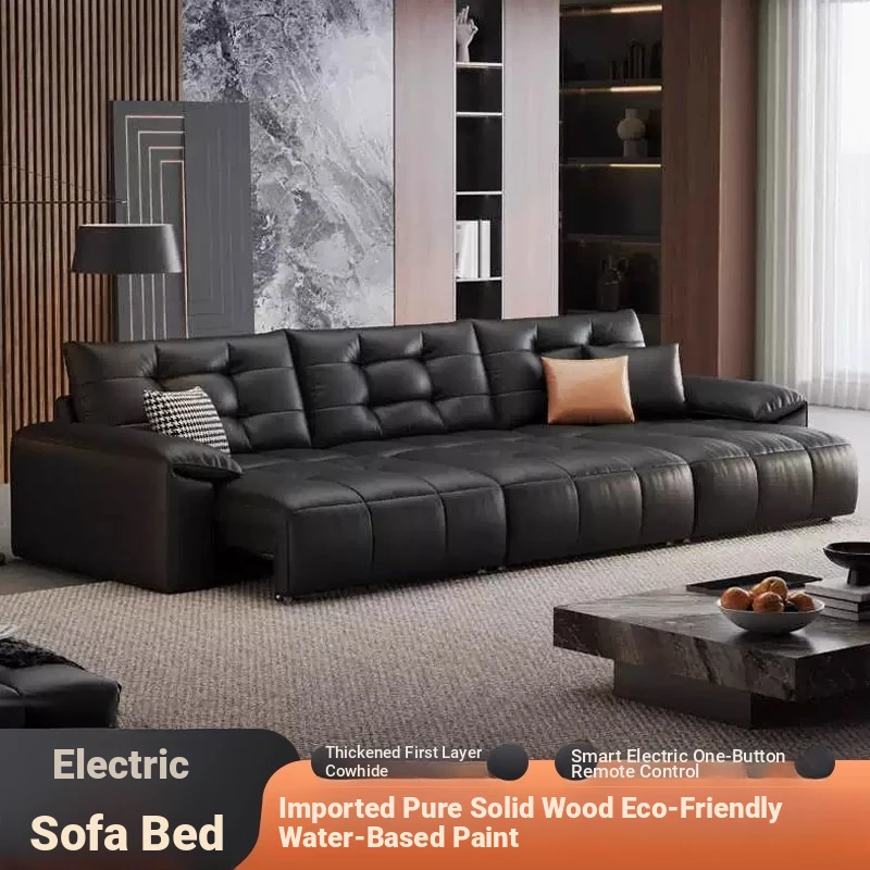 Genuine Leather Electric Sofa Bed - Versatile 3-Seater with Wall-Hugging Design, Expandable and Convertible for Ultimate Comfort and Style in Your Living Room!