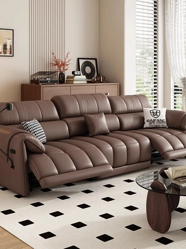 BaiFang Electric Multifunctional Sofa - Luxury Adjustable Leather Couch for Living Room, Wall-Free Design with Top Grain Cowhide, Perfect for Modern Homes