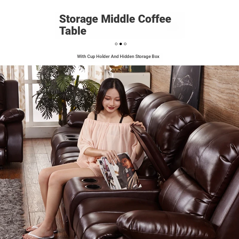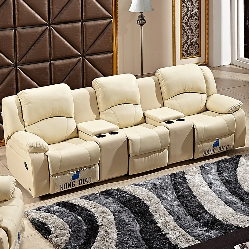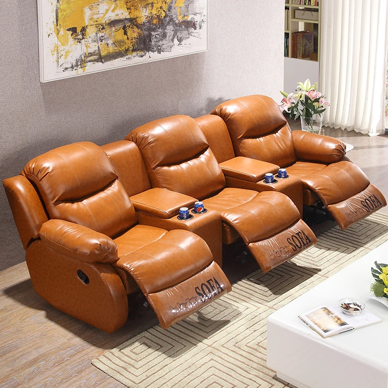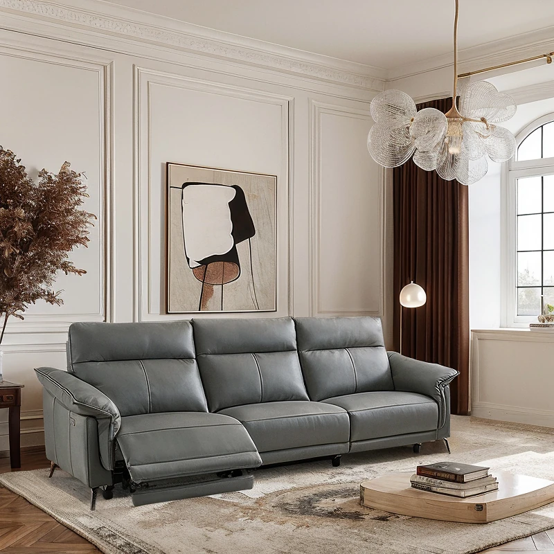 Luxury Home Theater Sofa Set - Genuine Leather Multi-Functional Electric Recliner for Villa Living Room and Media Room