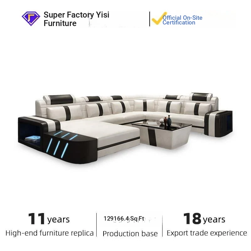 Ultra-Modern Home Theater Leather Sofa Set with LED Lights, Adjustable Headrests, and Storage Features - Perfect for Ultimate Comfort and Style!