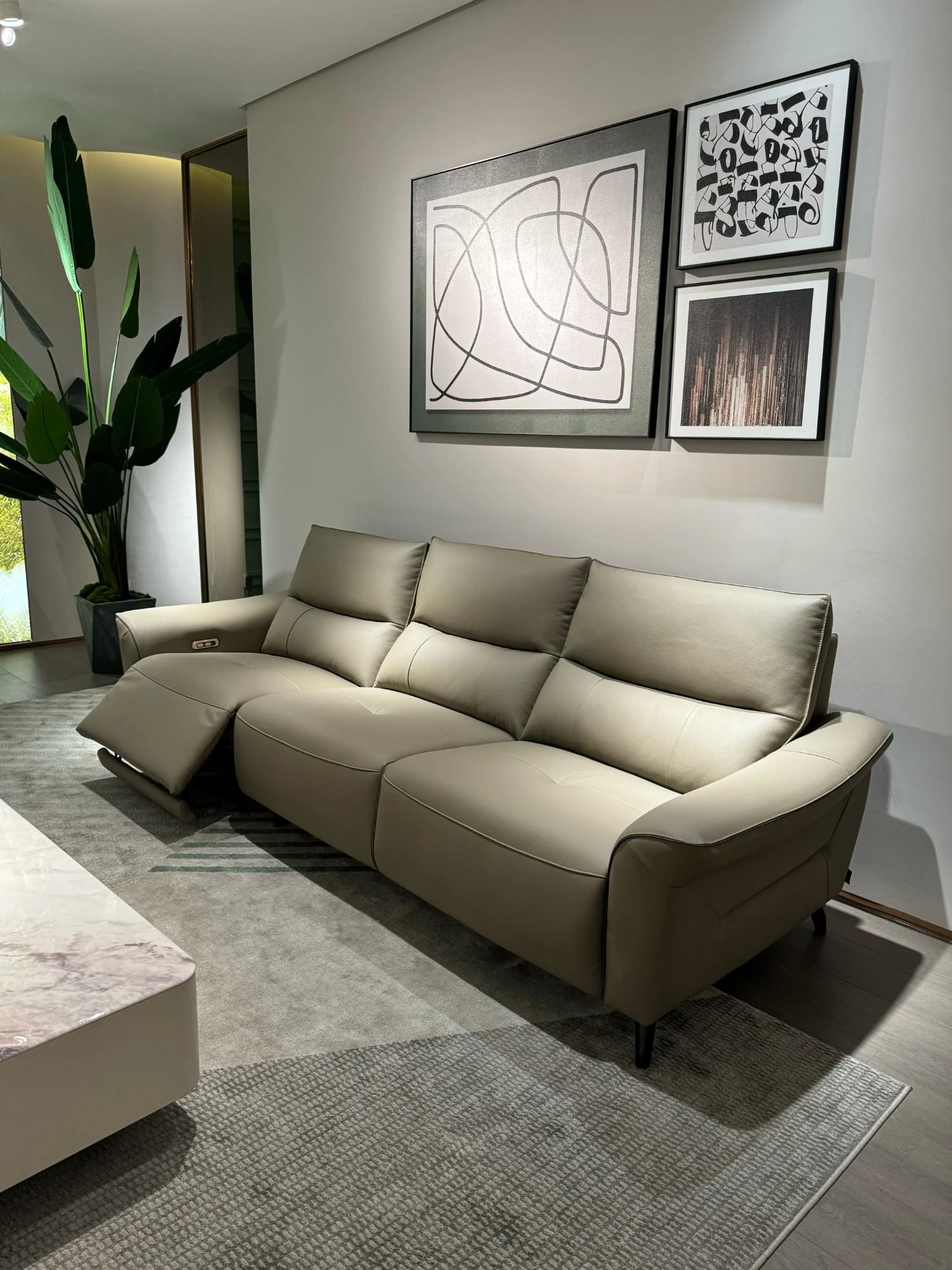 Italian Minimalist Electric Leather Sofa - Modern Simple Design for Living Room, Three-Seater with Zero Wall Clearance, Stylish and Comfortable Faux Leather Sofa