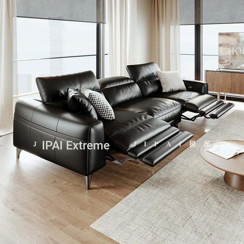 Elegant Italian Minimalist Genuine Leather Sofa for Small Spaces - Multi-Seat Electric Sofa in Black with Premium Top-Grain Leather. Perfect for Modern Living Rooms!