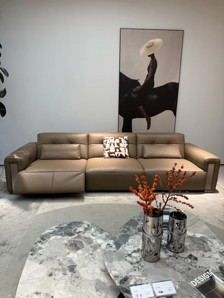 Modern Minimalist Italian Style Genuine Leather Sofa with Premium Top Layer Cowhide - Luxurious and Functional for Your Living Room