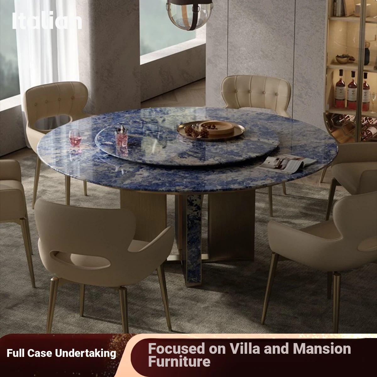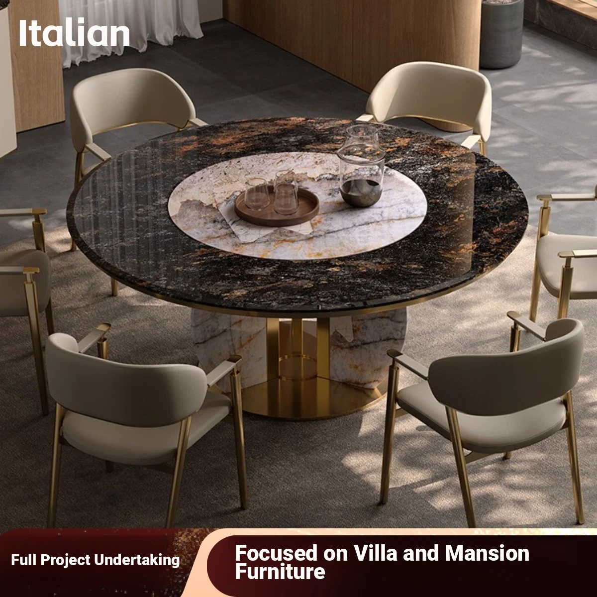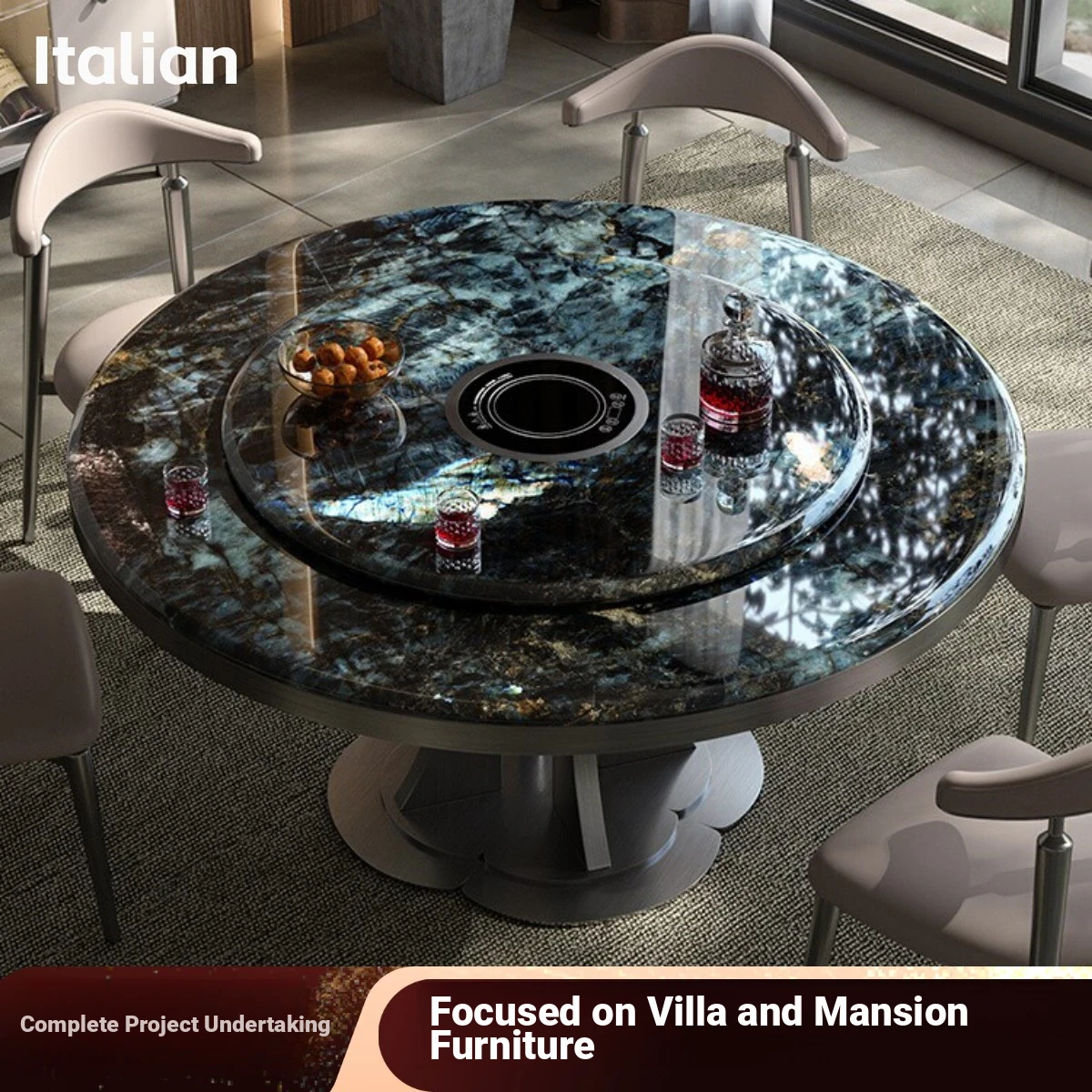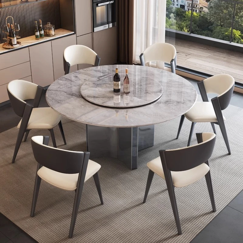 Italian Luxury Natural Stone Round Dining Table with Rotating Turntable for Villas and Spacious Flats - Elegant Embedded Design