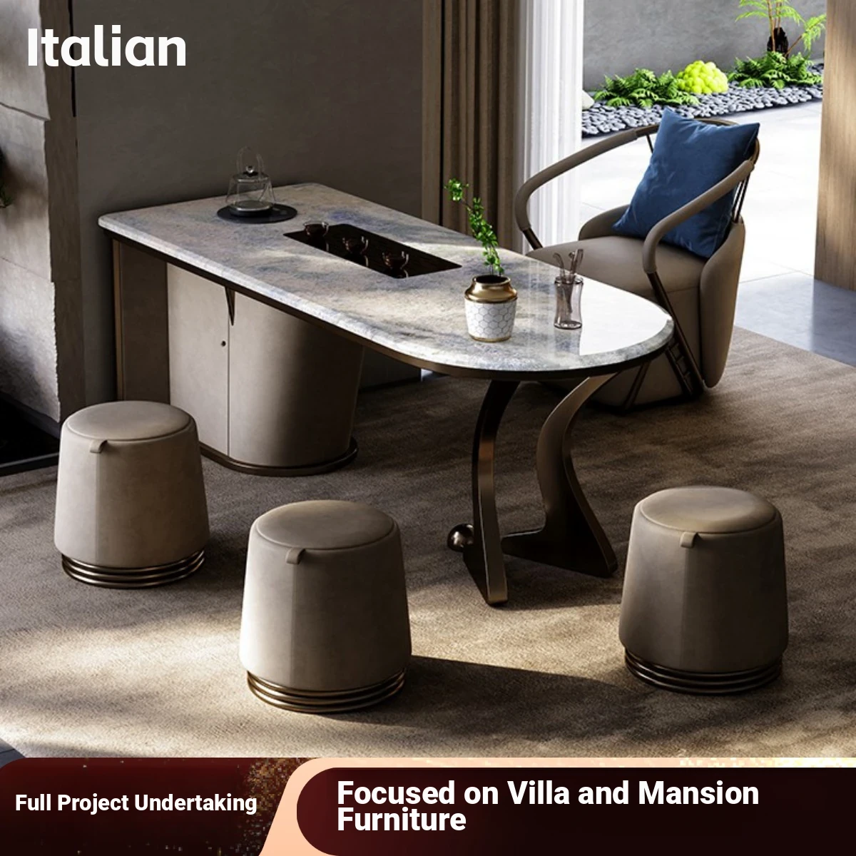 2023 New Luxury Natural Marble Tea Table - Designer Villa High-End Modern Minimalist Tea Station