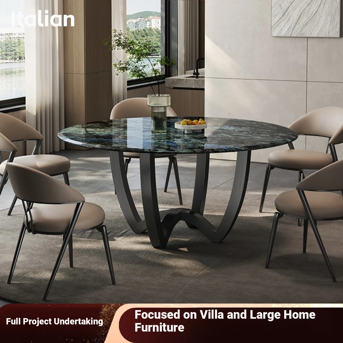 Italian Luxury Natural Stone Dining Table Set - Elegant Round Marble Dining Table with Chairs for High-End Villas and Modern Homes