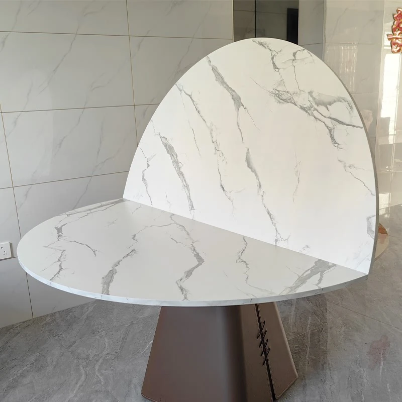 Modern Minimalist Microcrystalline Stone Dining Table - 1.3m Foldable and Expandable Square/Round Table for Small Spaces, Perfect for Home and Living Room Use