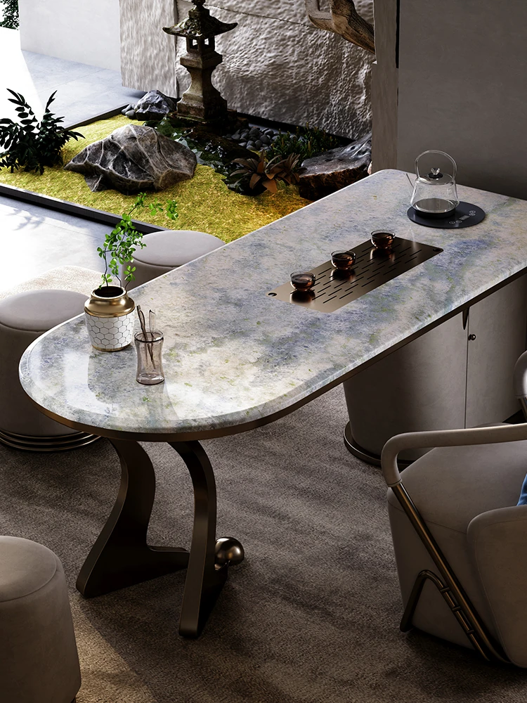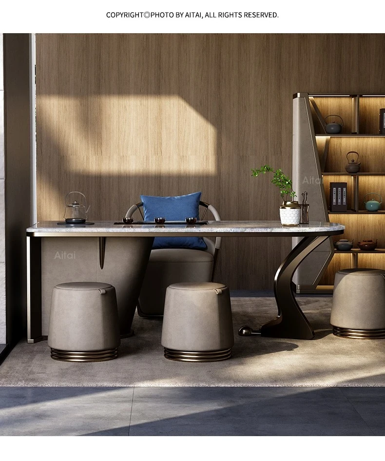 2023 New Luxury Natural Marble Tea Table - Designer Villa High-End Modern Minimalist Tea Station