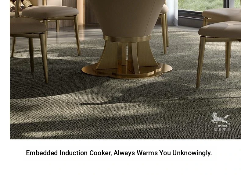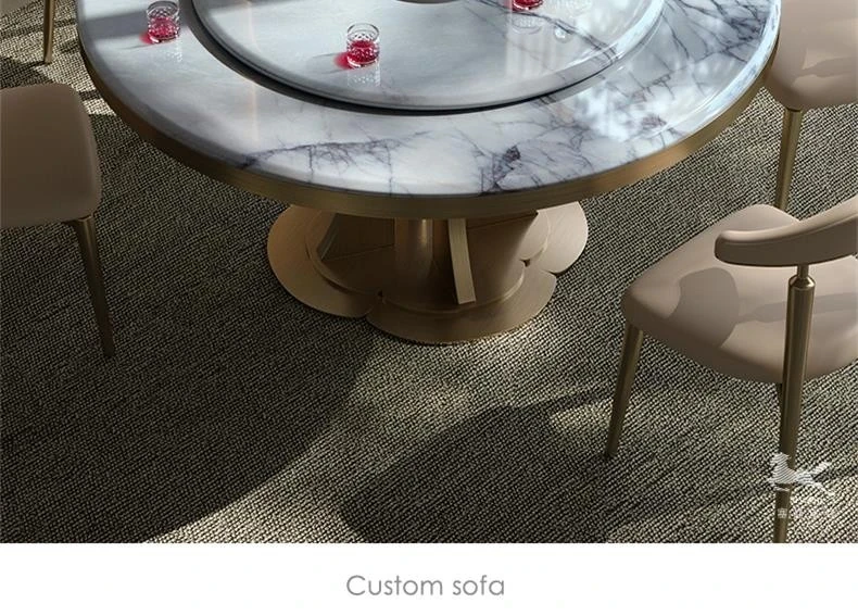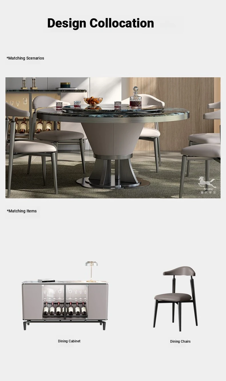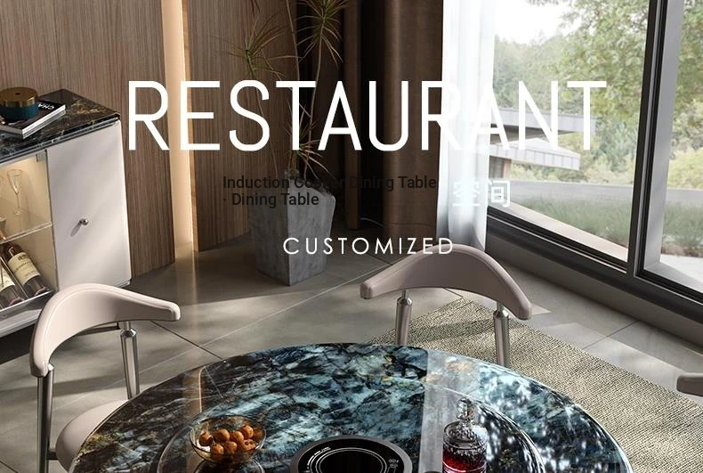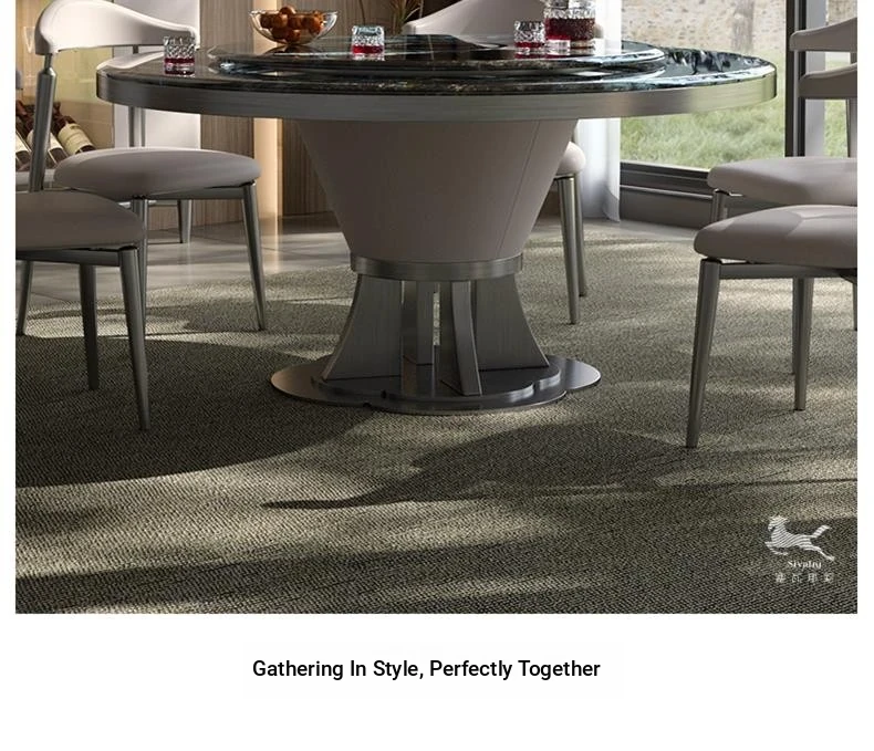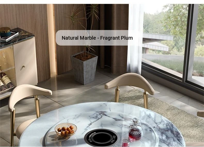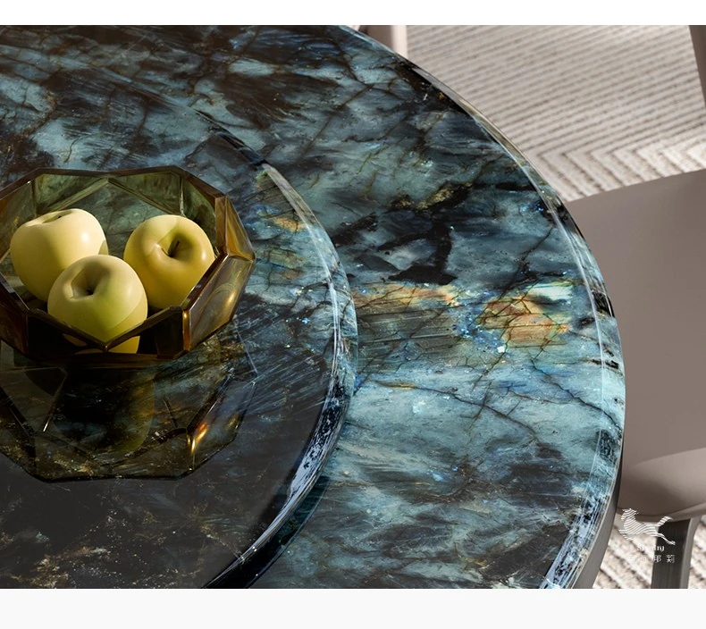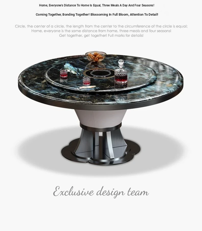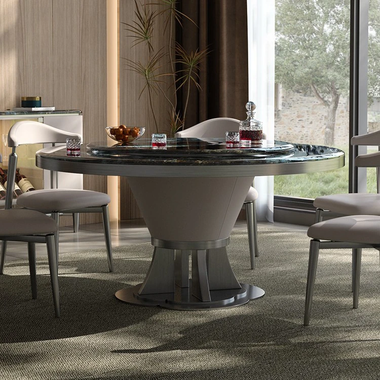Italian Luxury Natural Stone Round Dining Table with Rotating Turntable for Villas and Spacious Flats - Elegant Embedded Design