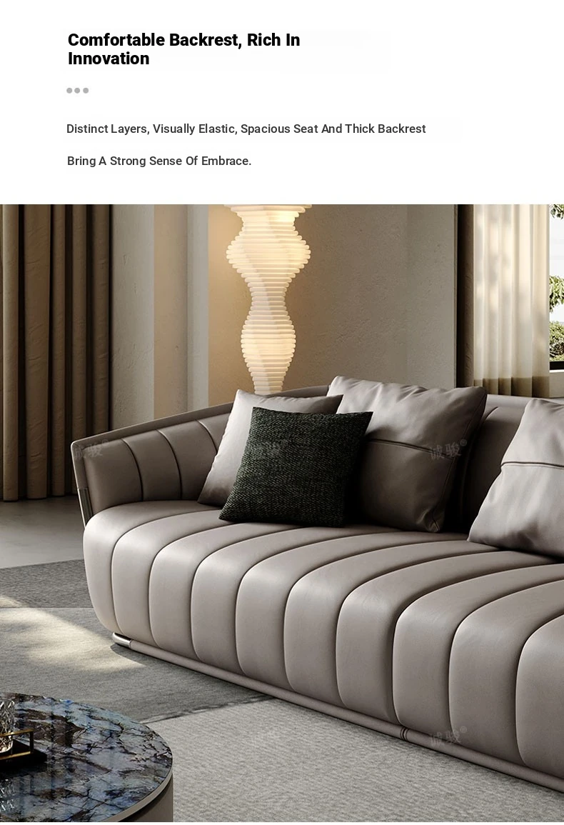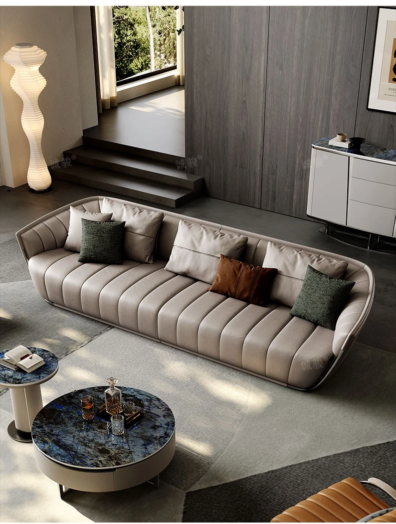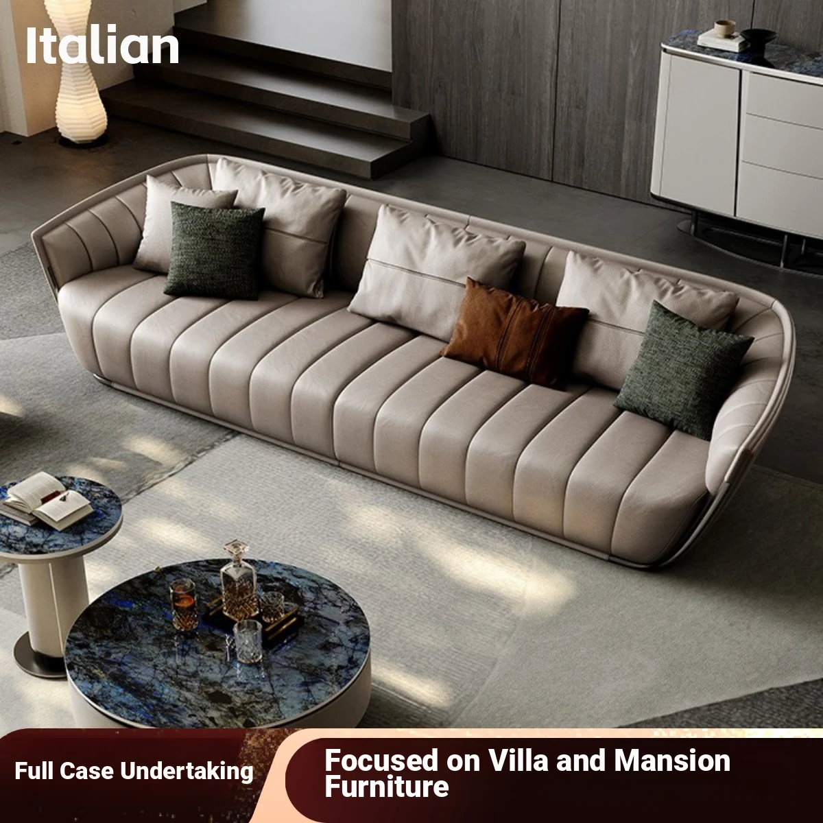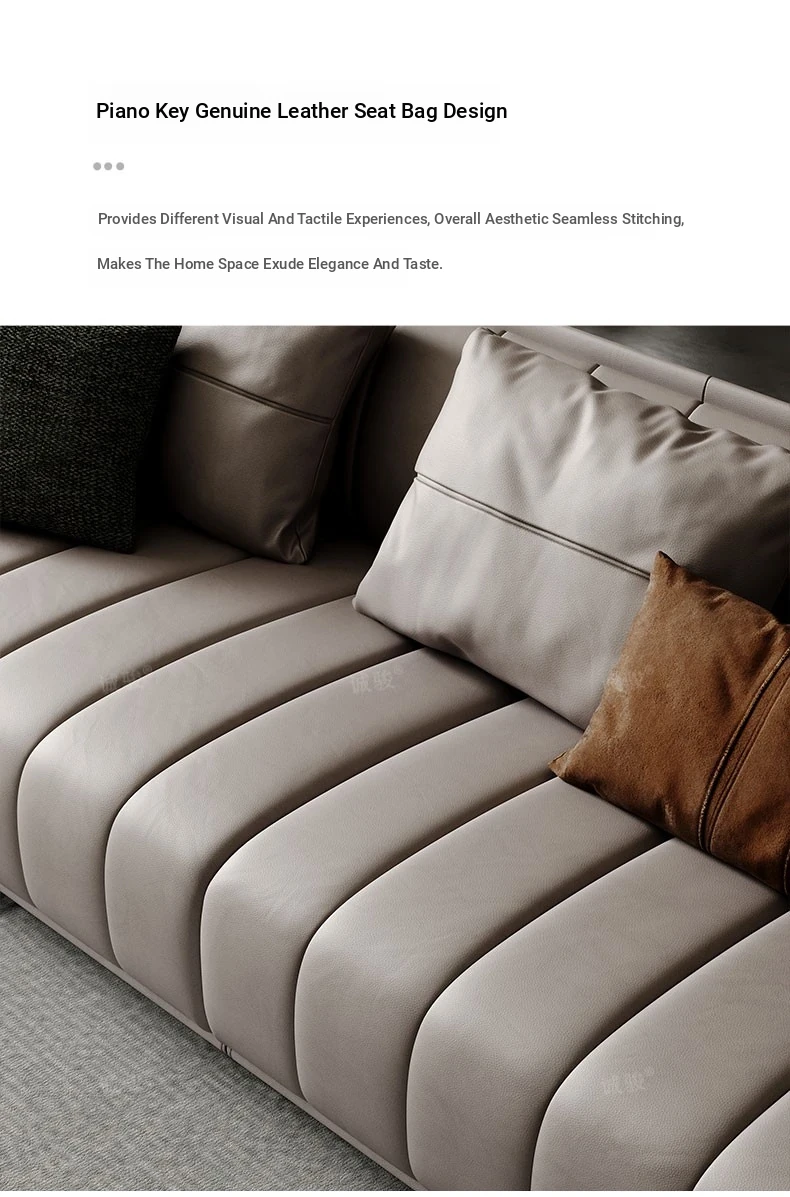 Italian Minimalist Luxury Sofa for Spacious Living Rooms - Premium Genuine Leather with Piano Key Design, Perfect for Modern High-End Interiors