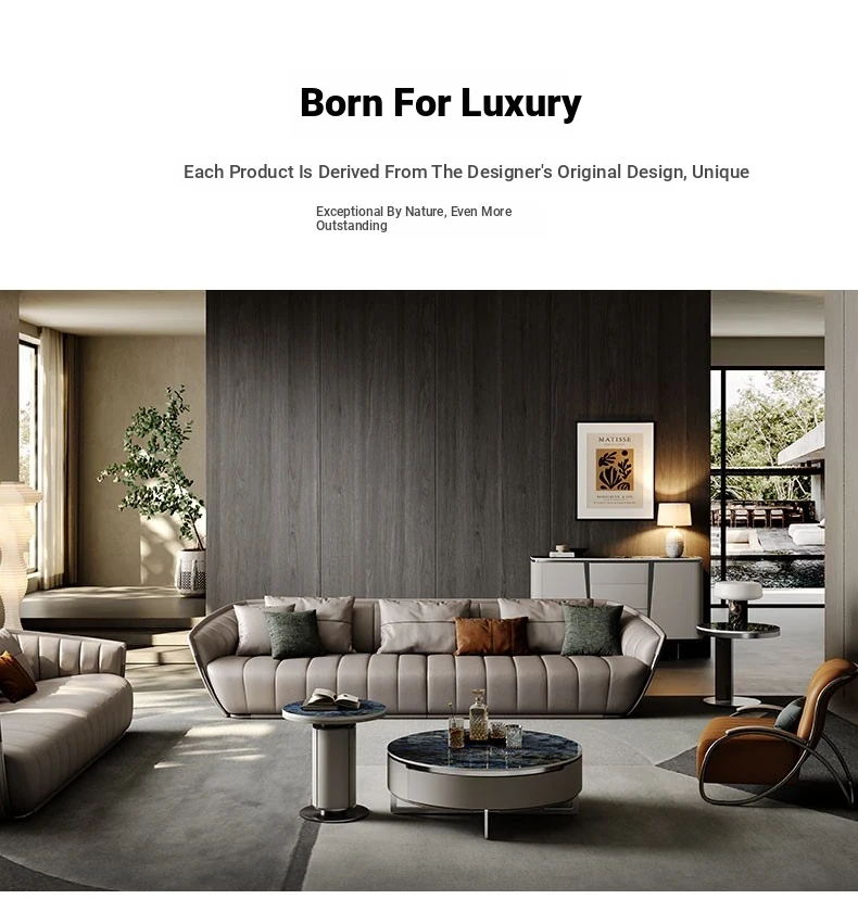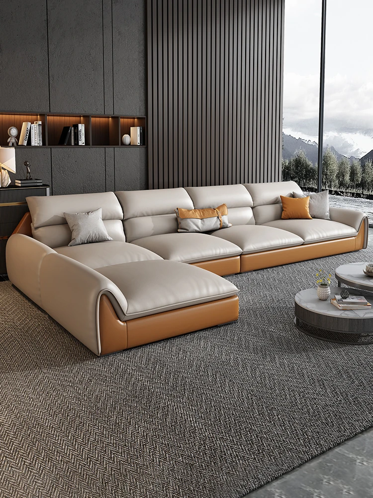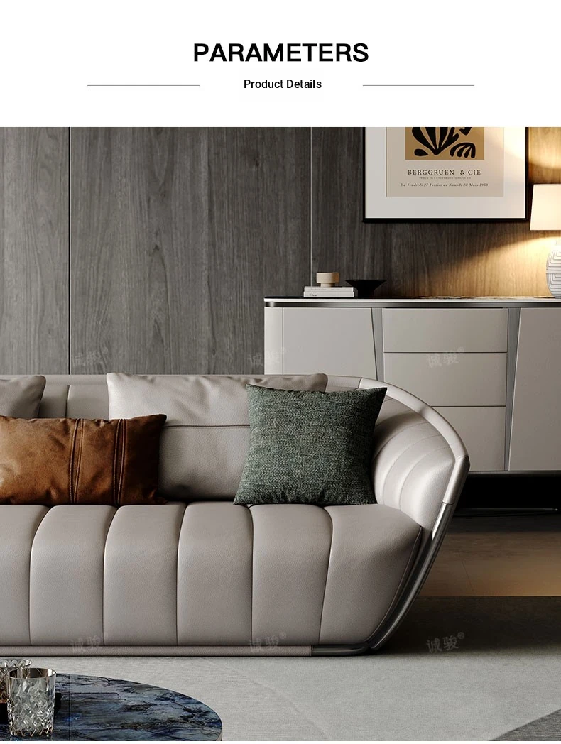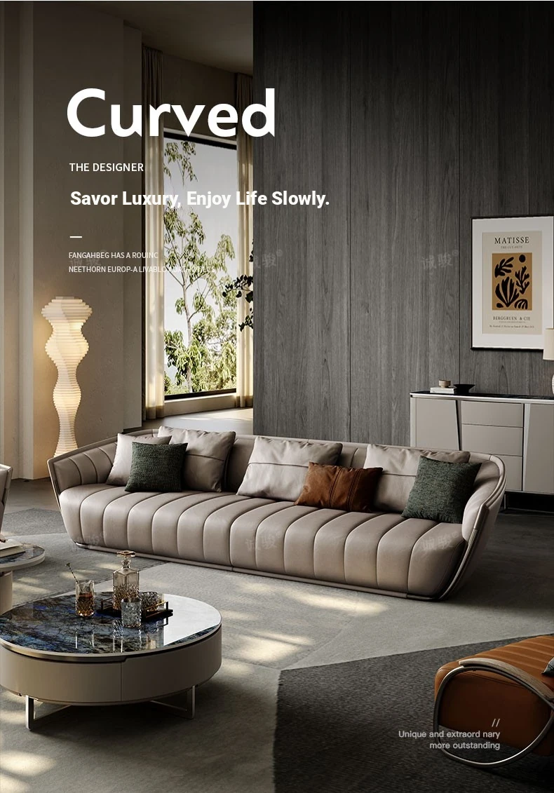 Italian Minimalist Luxury Sofa for Spacious Living Rooms - Premium Genuine Leather with Piano Key Design, Perfect for Modern High-End Interiors