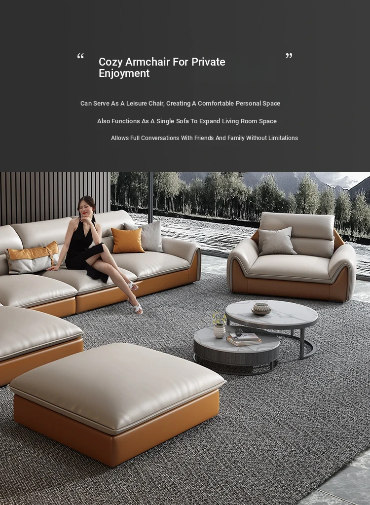 Italian Minimalist Tech Fabric Eco-Leather Sofa - Modern Scandinavian Design for Luxurious Living Rooms, Perfect for Small or Large Spaces, Versatile Modular Style
