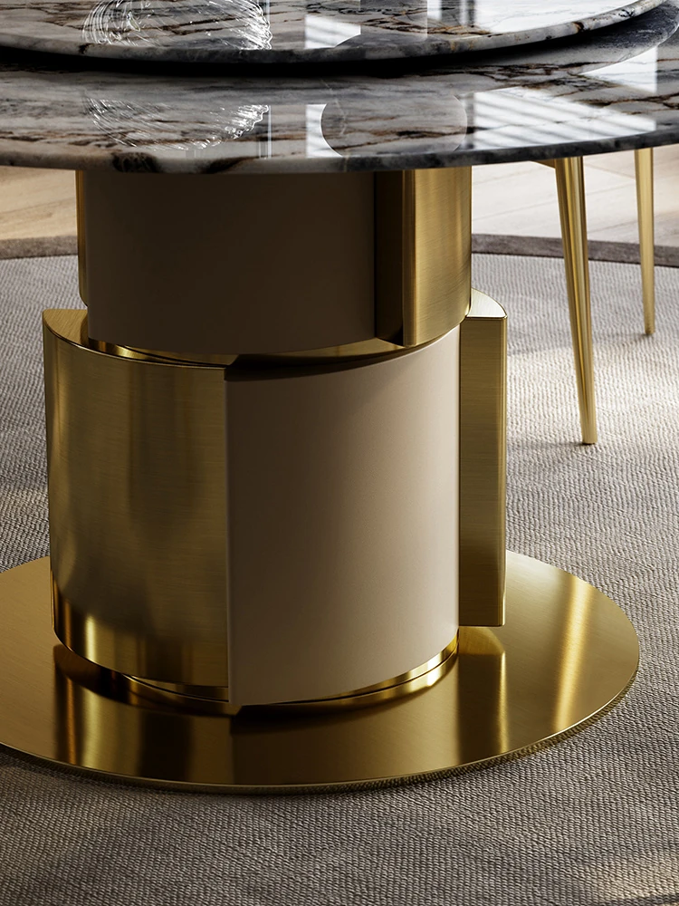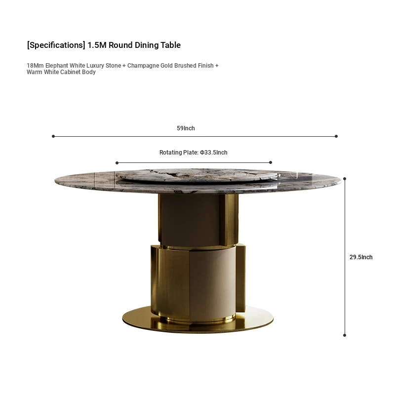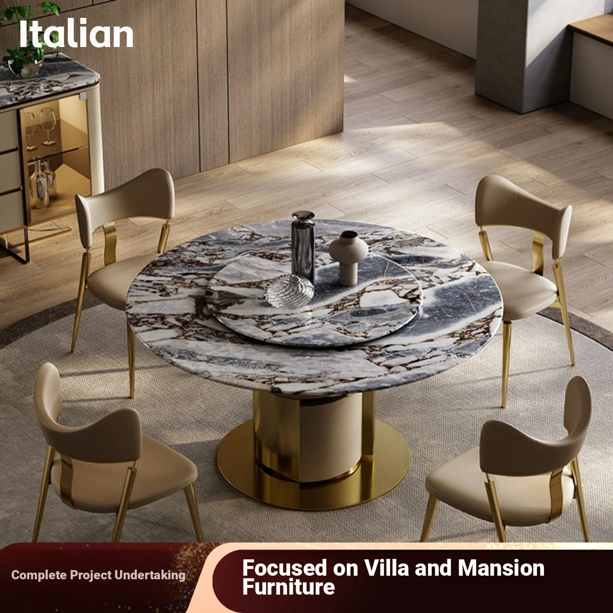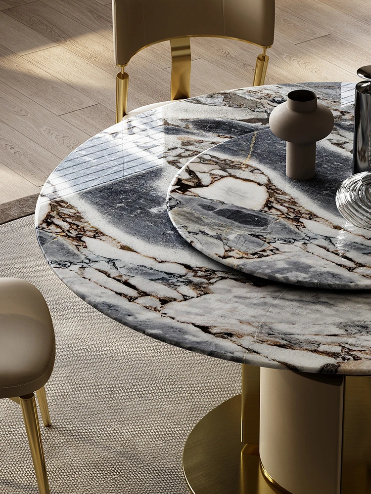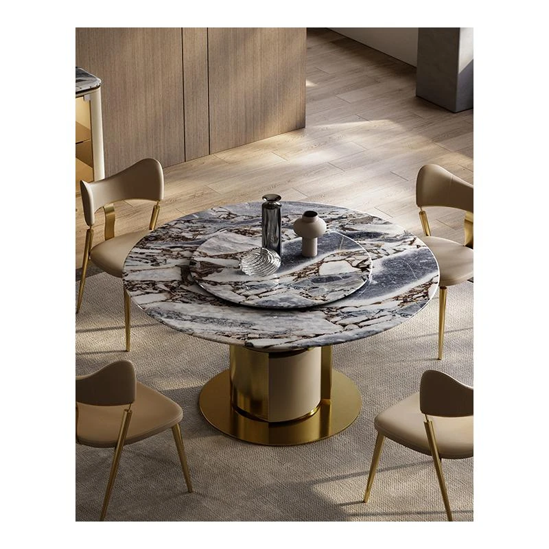 Luxury Round Marble Dining Table with Rotating Turntable - 2023 New High-End Design, Perfect for Elegant Dining Experiences