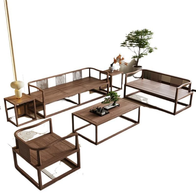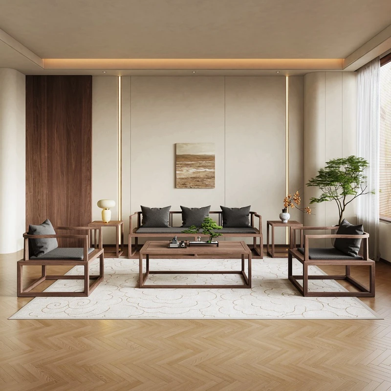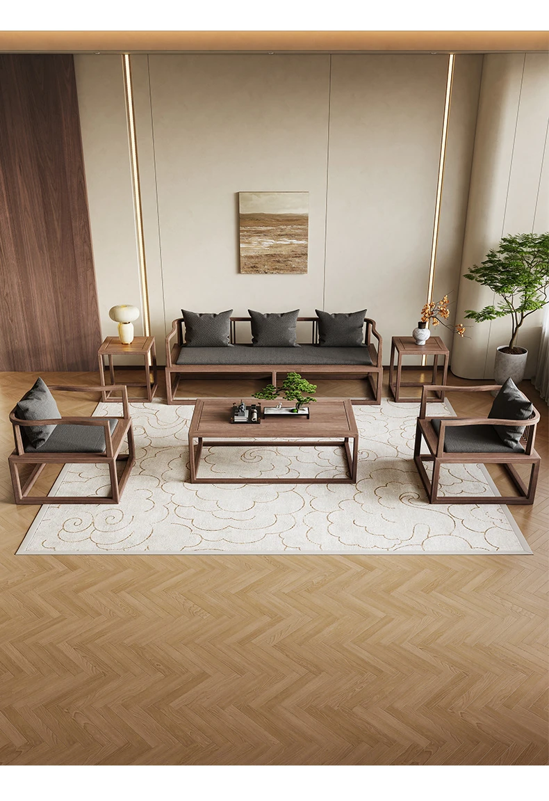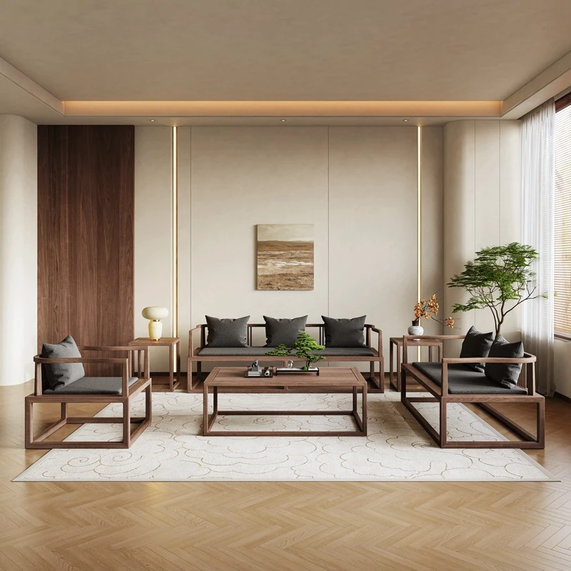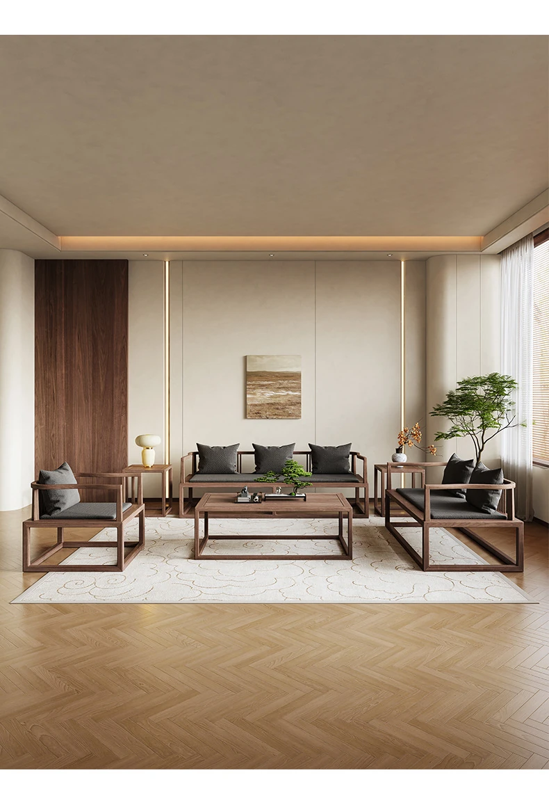 Zen Style New Chinese Sofa Set - Minimalist Design with North American Black Walnut Solid Wood, Ideal for Small and Large Spaces, Perfect for Villas and Elegant Interiors.