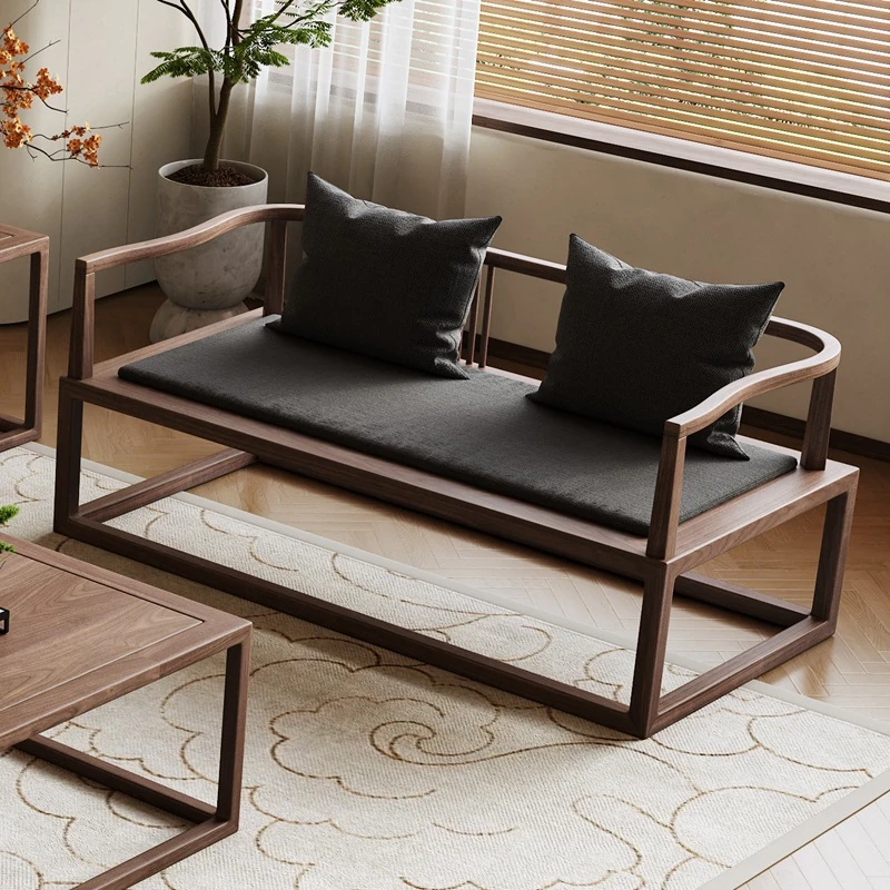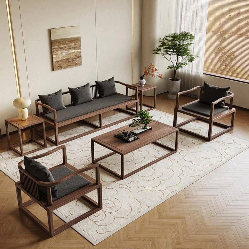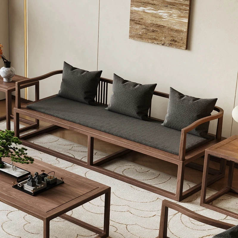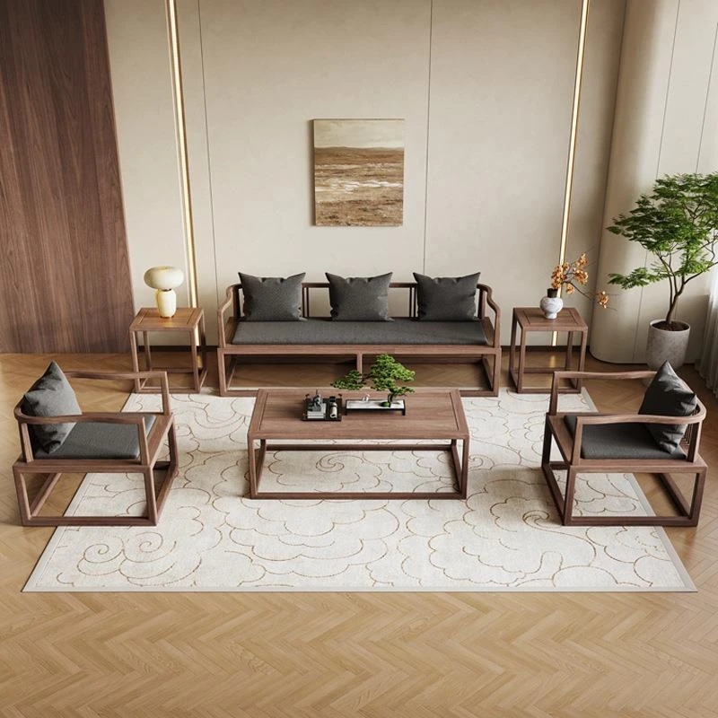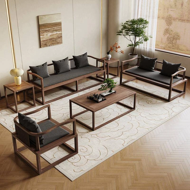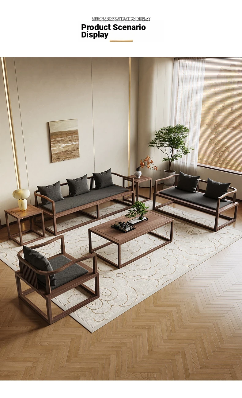 Zen Style New Chinese Sofa Set - Minimalist Design with North American Black Walnut Solid Wood, Ideal for Small and Large Spaces, Perfect for Villas and Elegant Interiors.