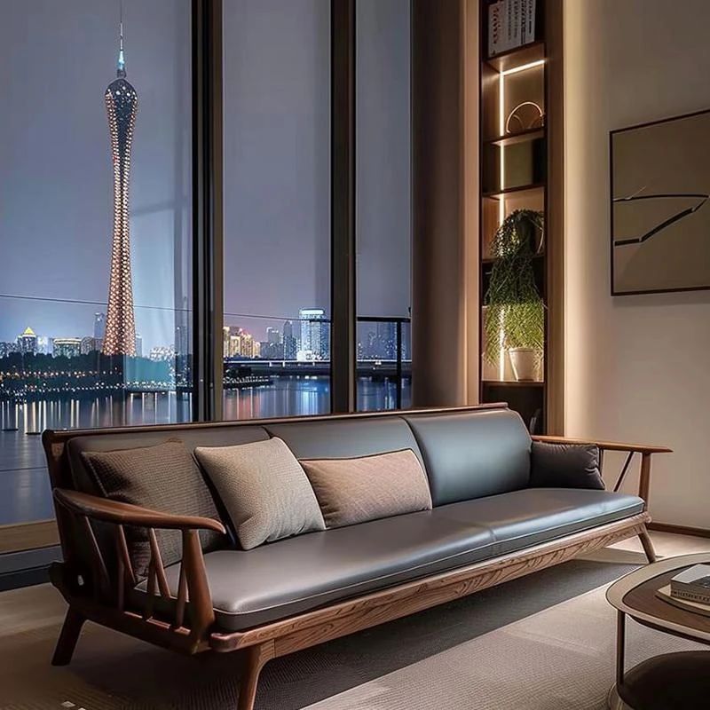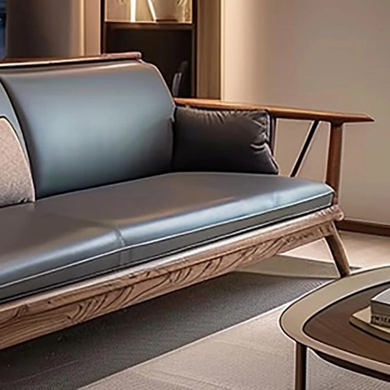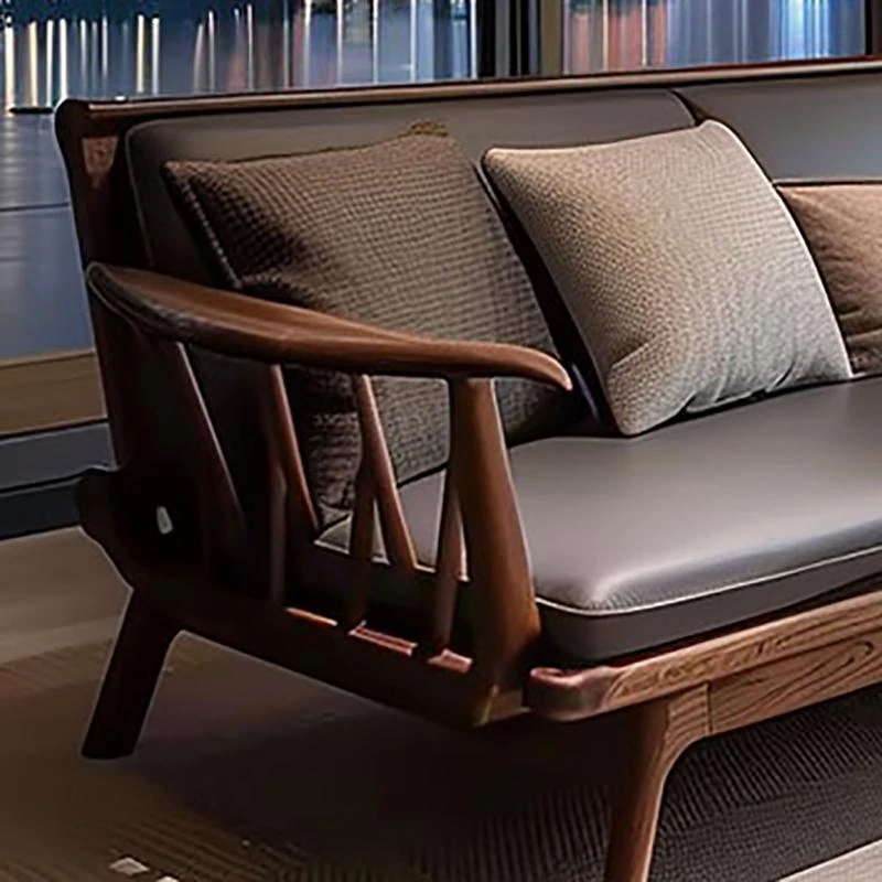 Zen-style Genuine Leather Sofa in Walnut and Ash Wood - Elegant and Luxurious Furniture for Offices, Hotels, and Guesthouses - Perfect for Modern Living Rooms