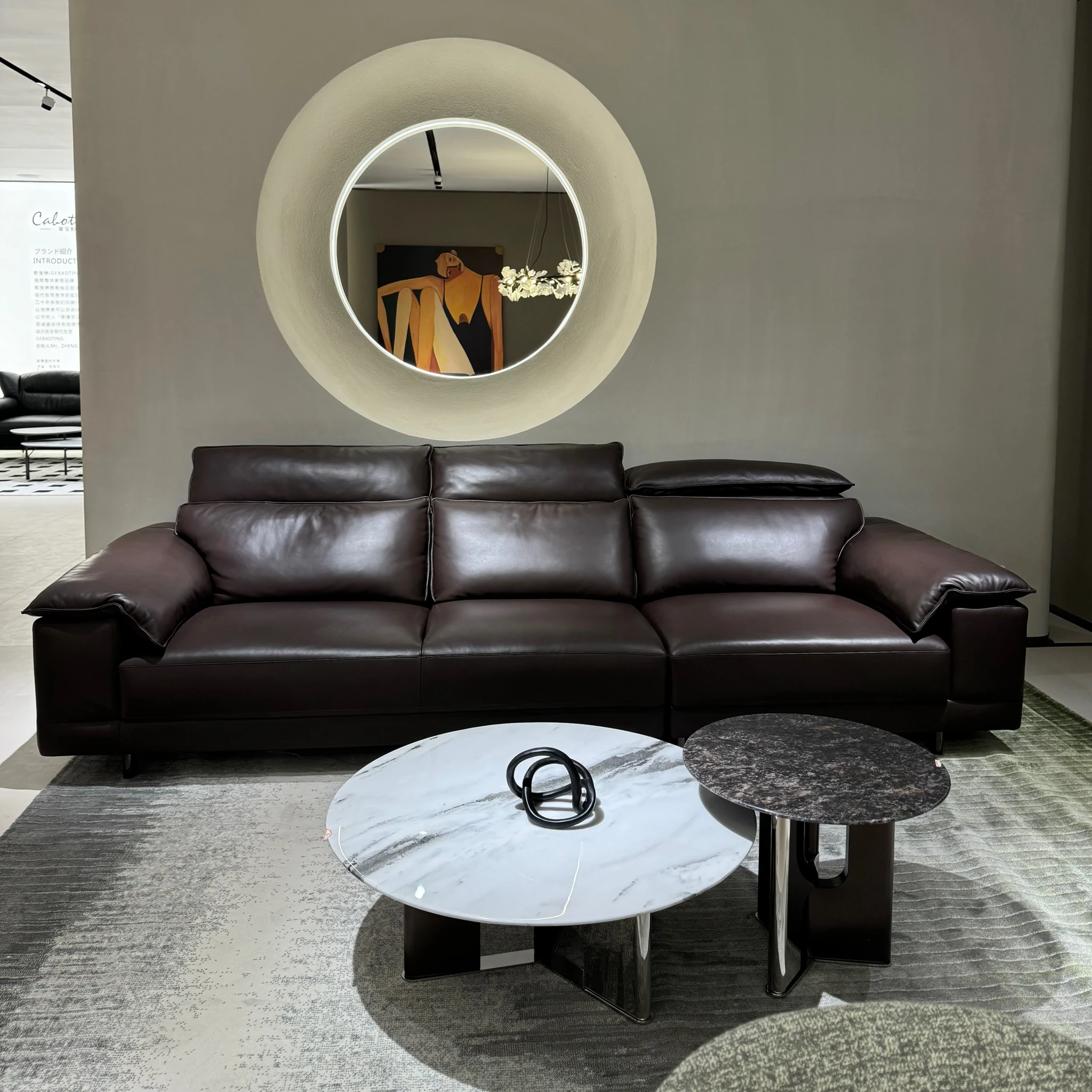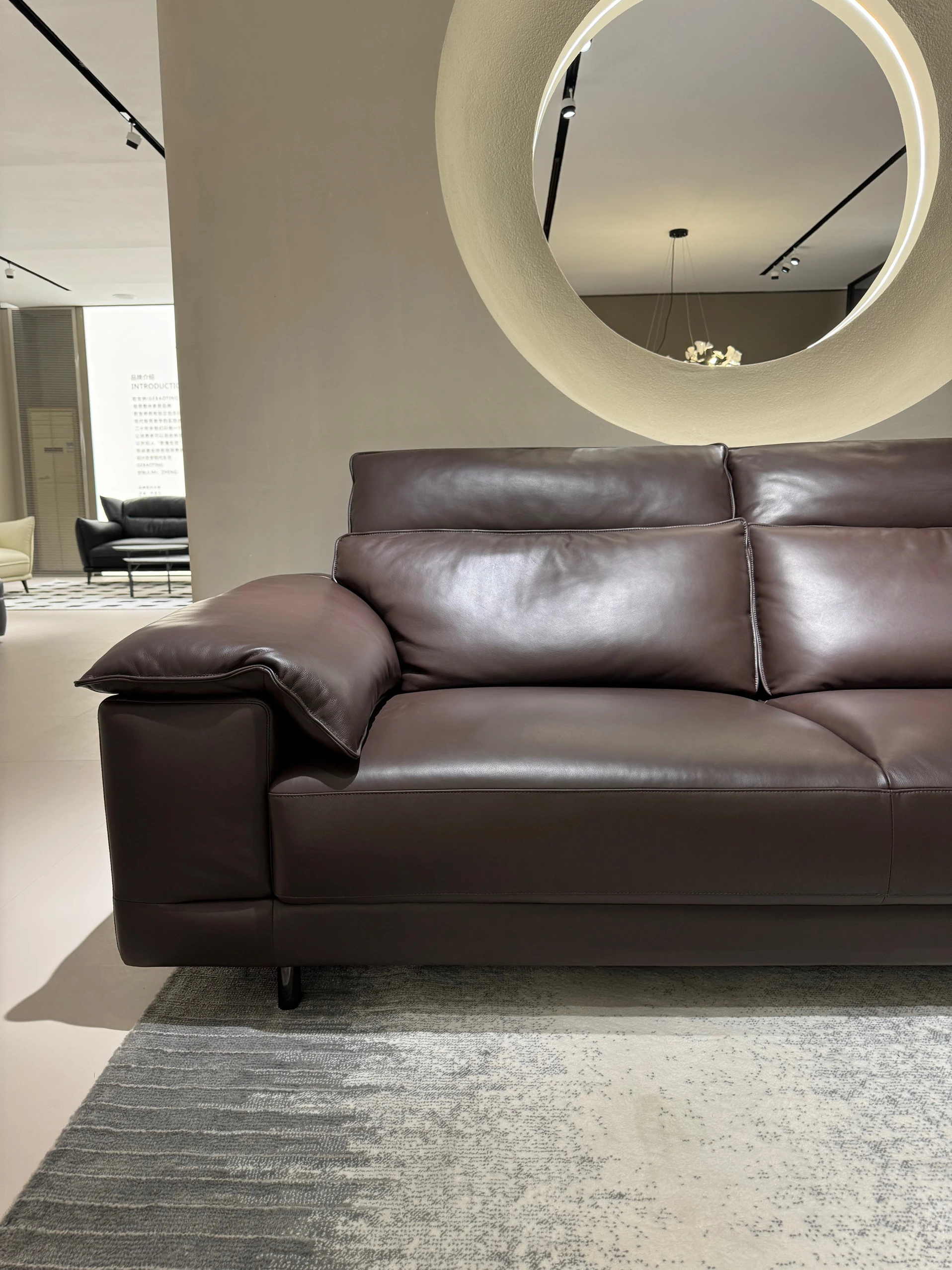 高背デザインのラグジュアリーな本革ソファー|モダンでシンプルなスタイル、どんなサイズの部屋にもフィットする直線的なデザイン!快適な座り心地で、リビングを格上げします。