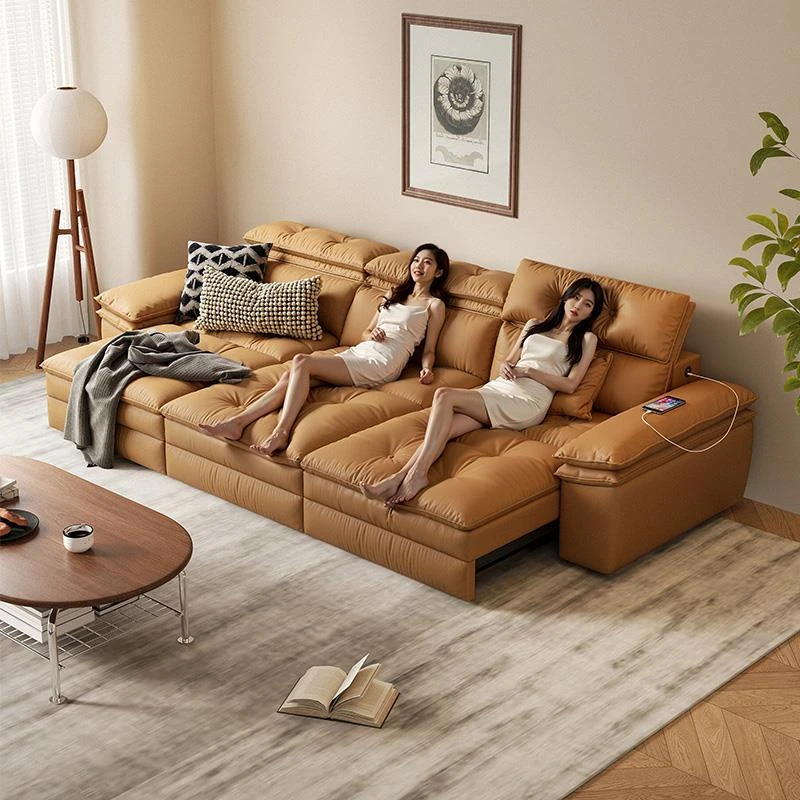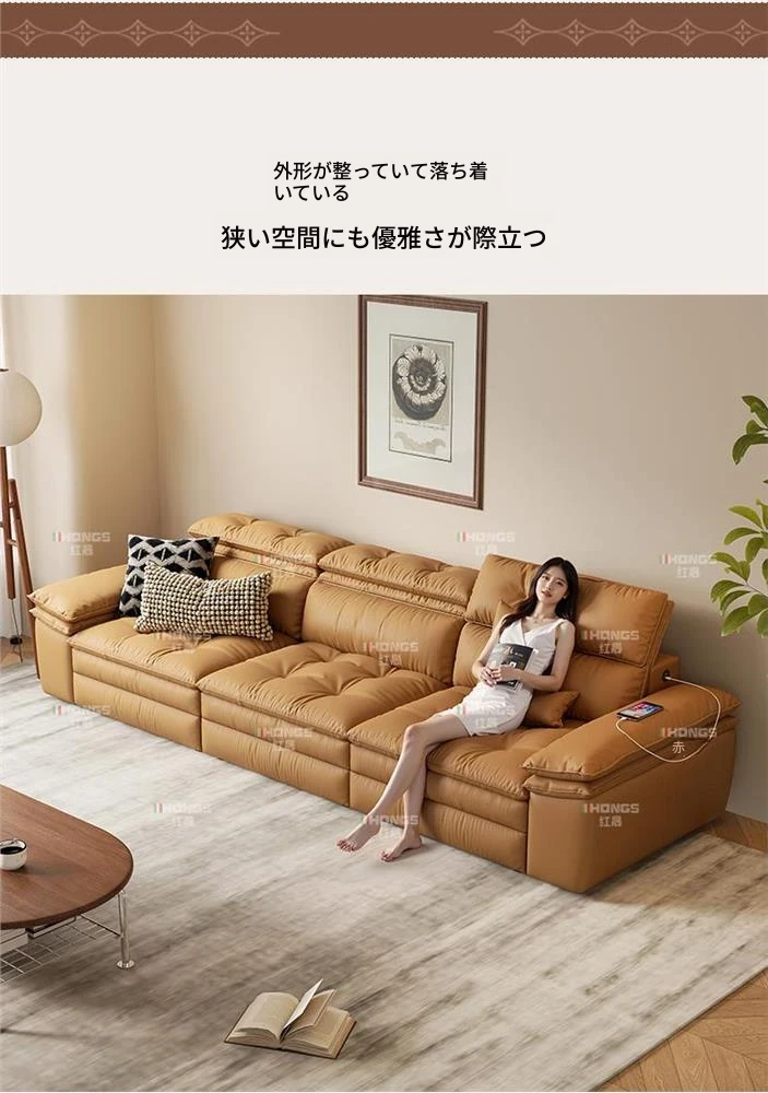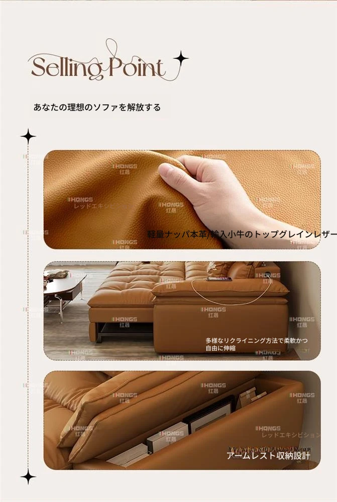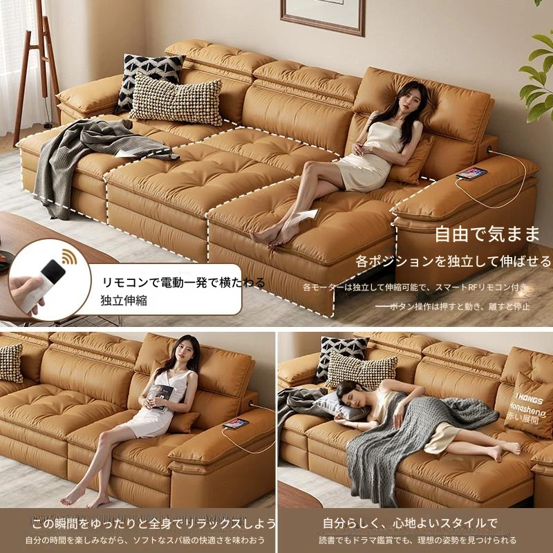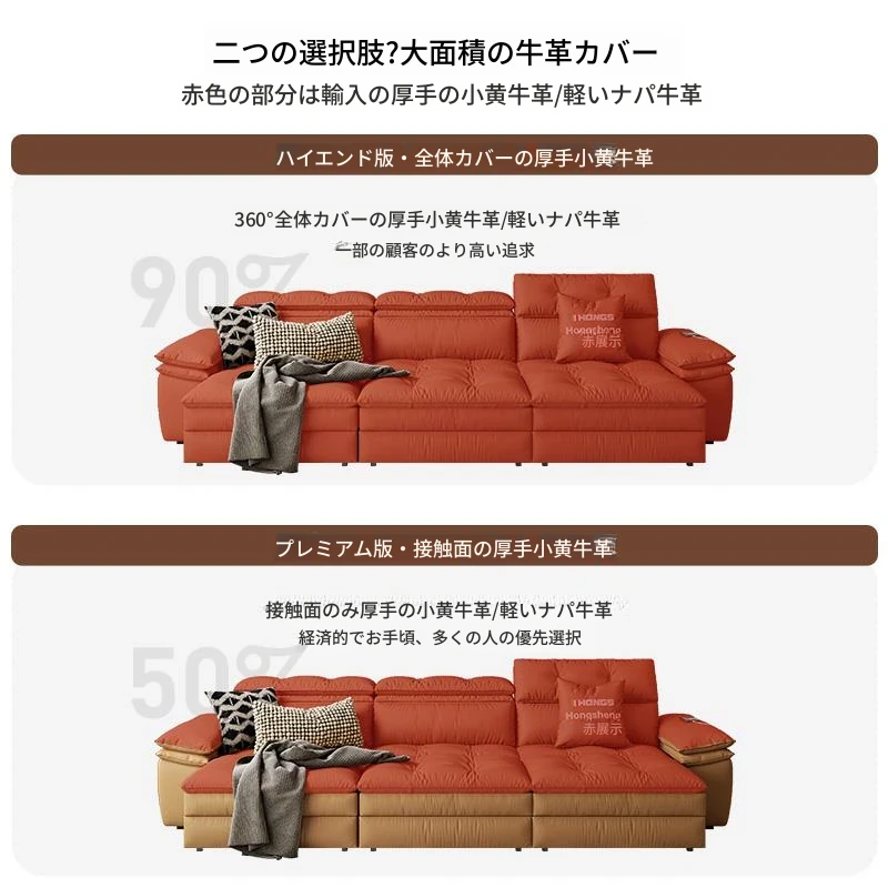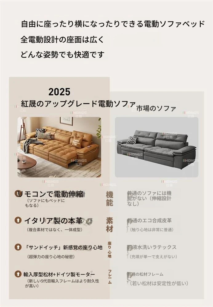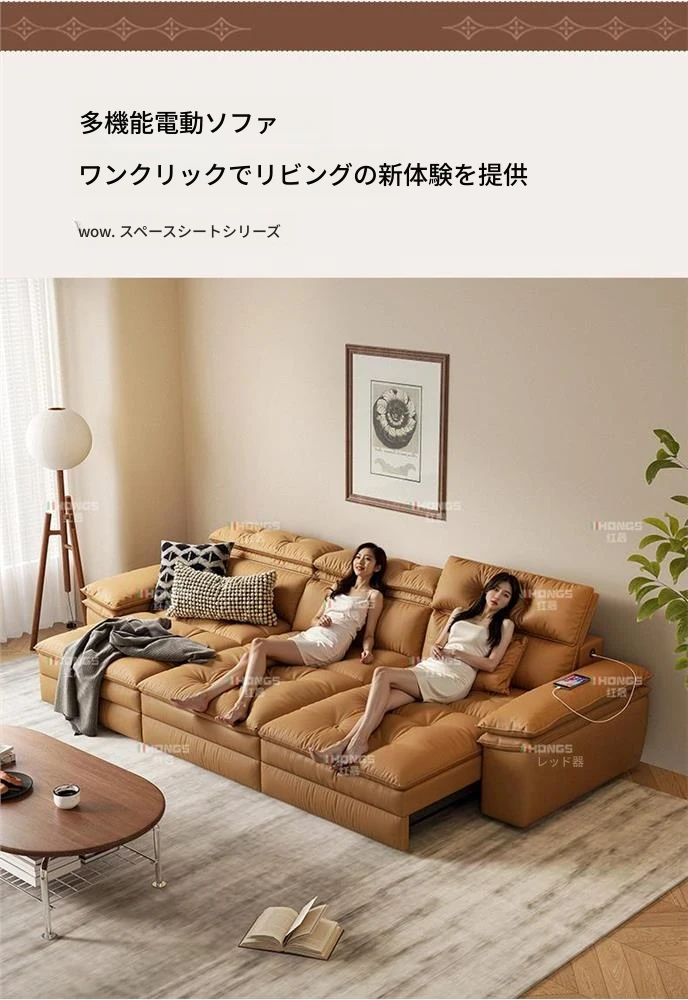 2025年新作!紅晟電動ソファベッド - 小型リビングに最適な電動伸縮ソファ。壁にぴったり寄せられるデザインで、贅沢な本革製。快適さとスタイルを両立させた理想の家具です!