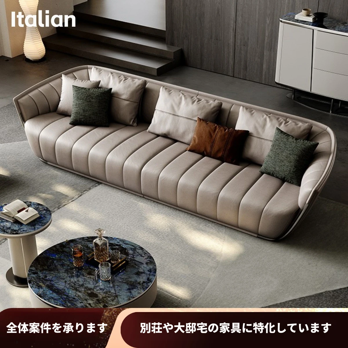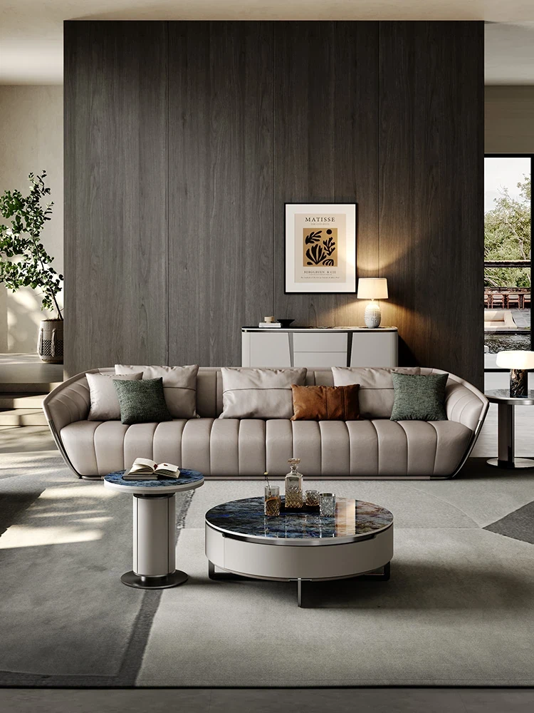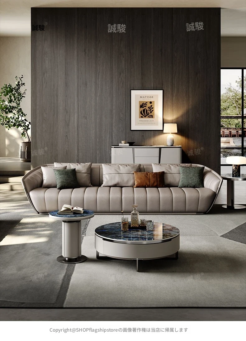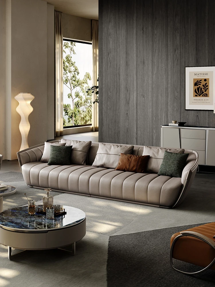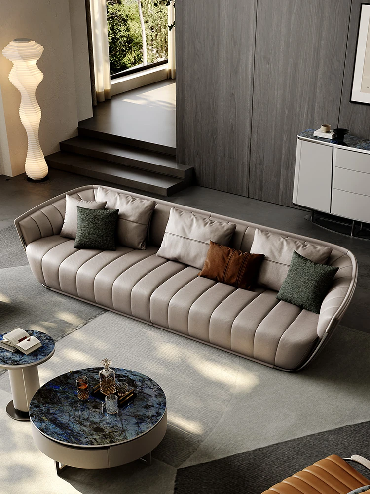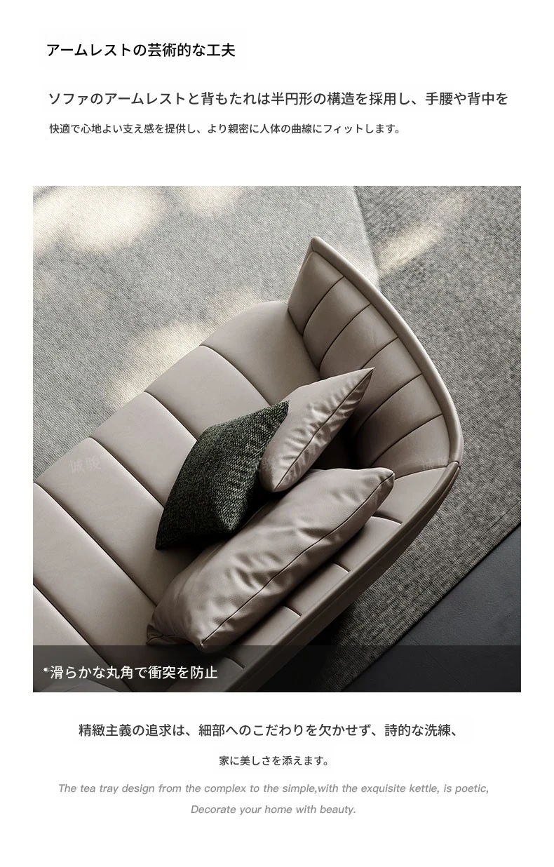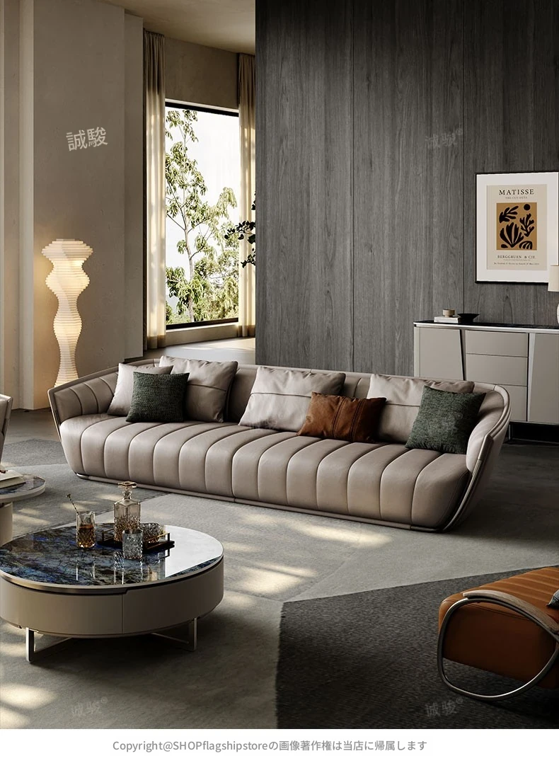 イタリアンミニマルソファ 大型リビング向け 高級感あふれるモダンデザイン 本革ピアノキー仕上げの一級牛革ソファ