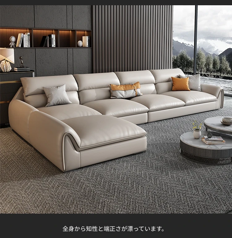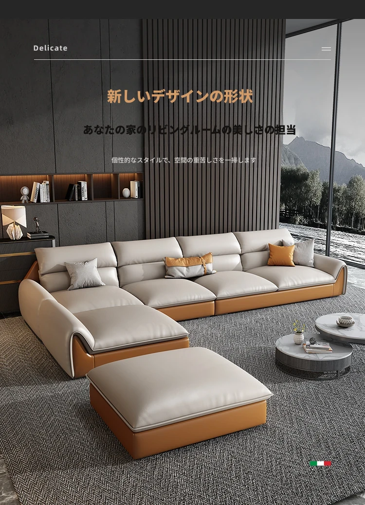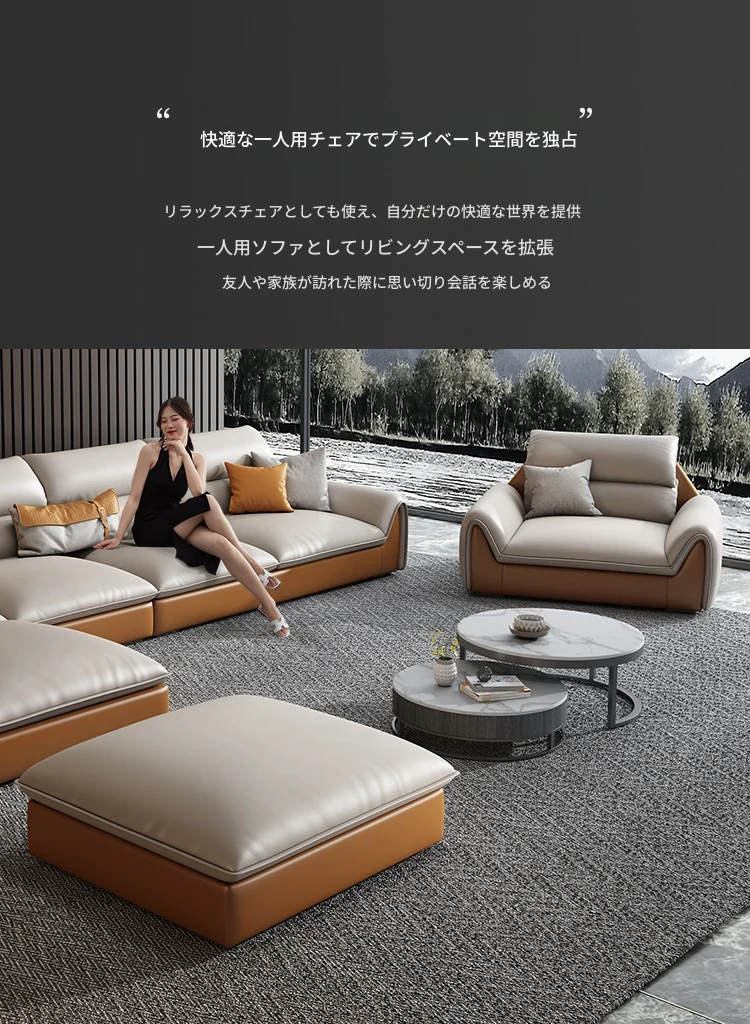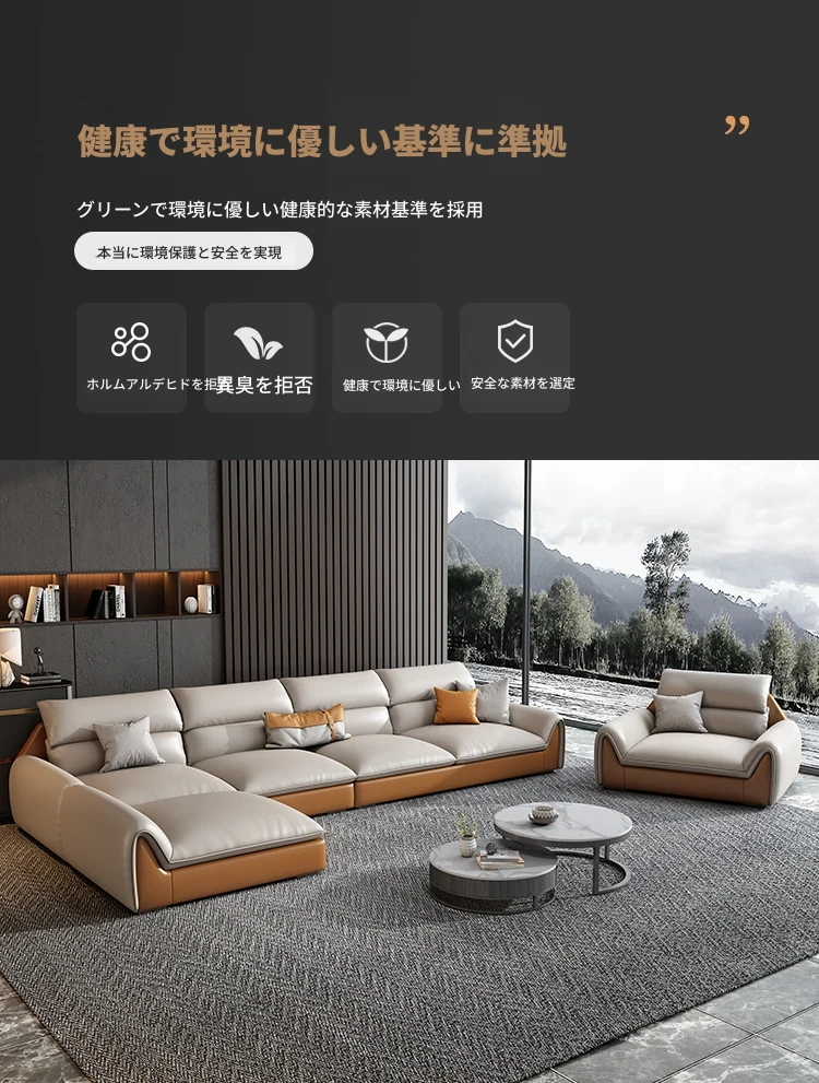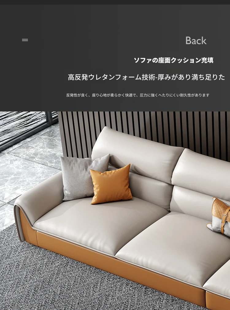 イタリアンミニマルテクスチャーエコレザーソファー - モダンでシンプルなデザイン、北欧スタイルのリビングにぴったり!軽やかなラグジュアリー感で、大小様々な部屋にマッチするコンビネーション。