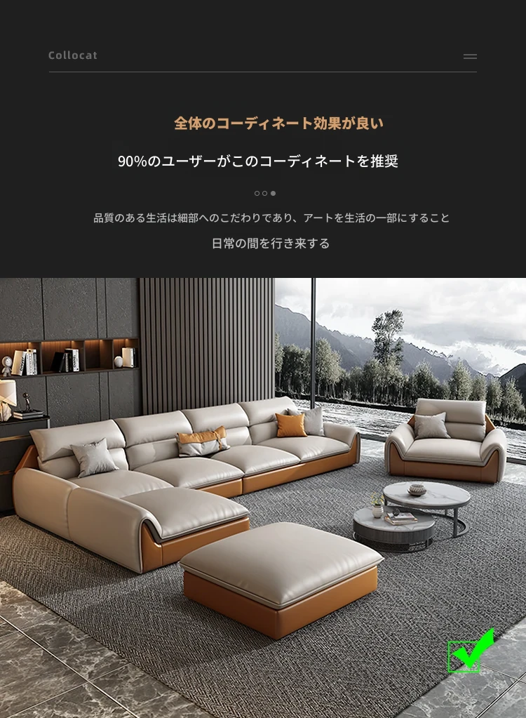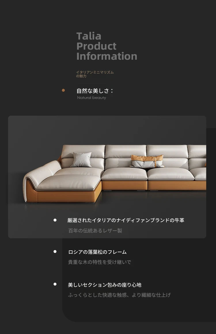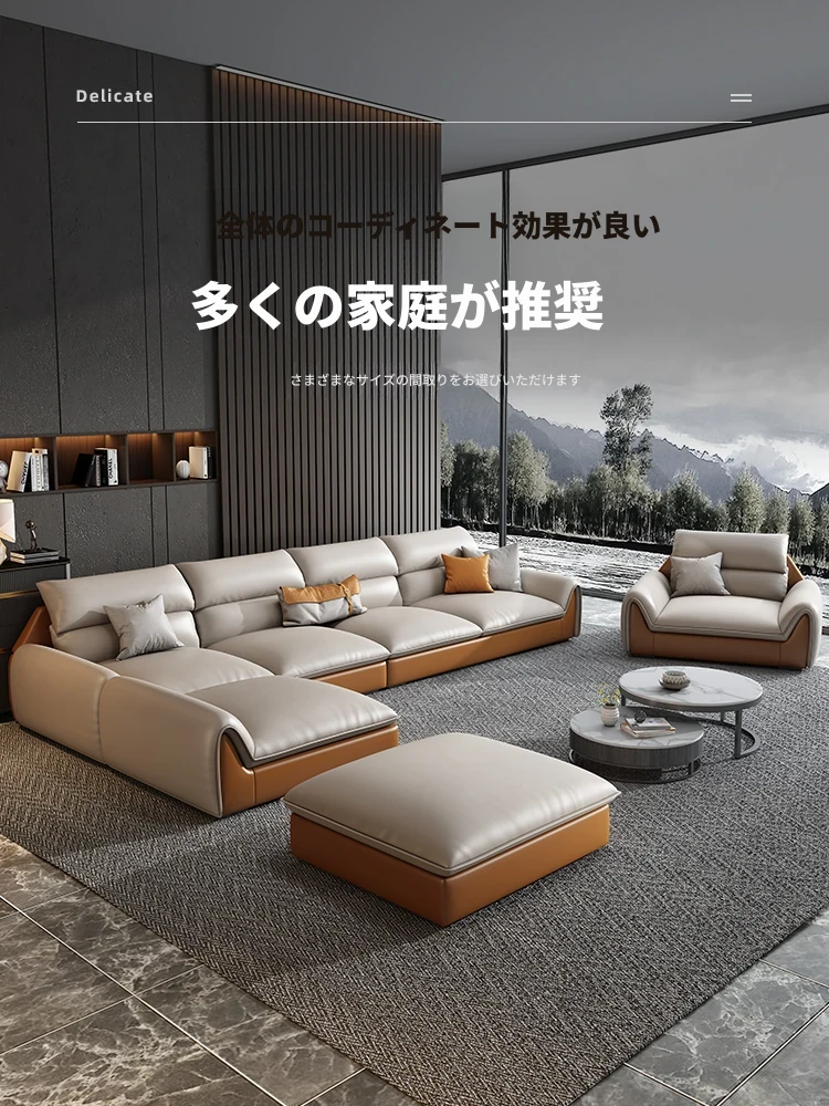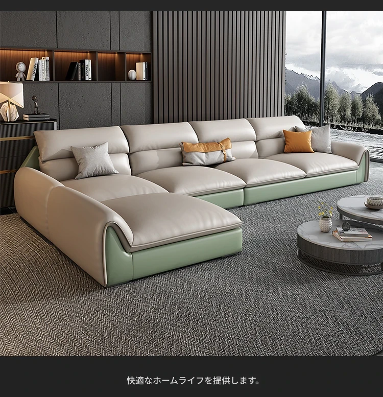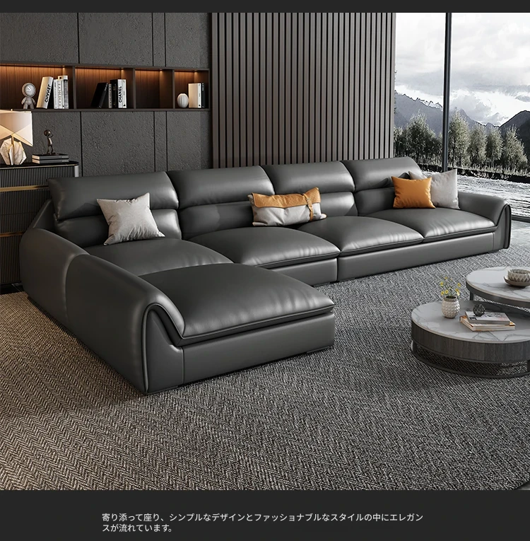 イタリアンミニマルテクスチャーエコレザーソファー - モダンでシンプルなデザイン、北欧スタイルのリビングにぴったり!軽やかなラグジュアリー感で、大小様々な部屋にマッチするコンビネーション。