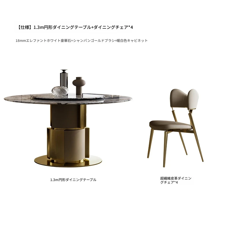 【ラウンド天然ラグジュアリー石】1.3メートルダイニングテーブル+ダイニング