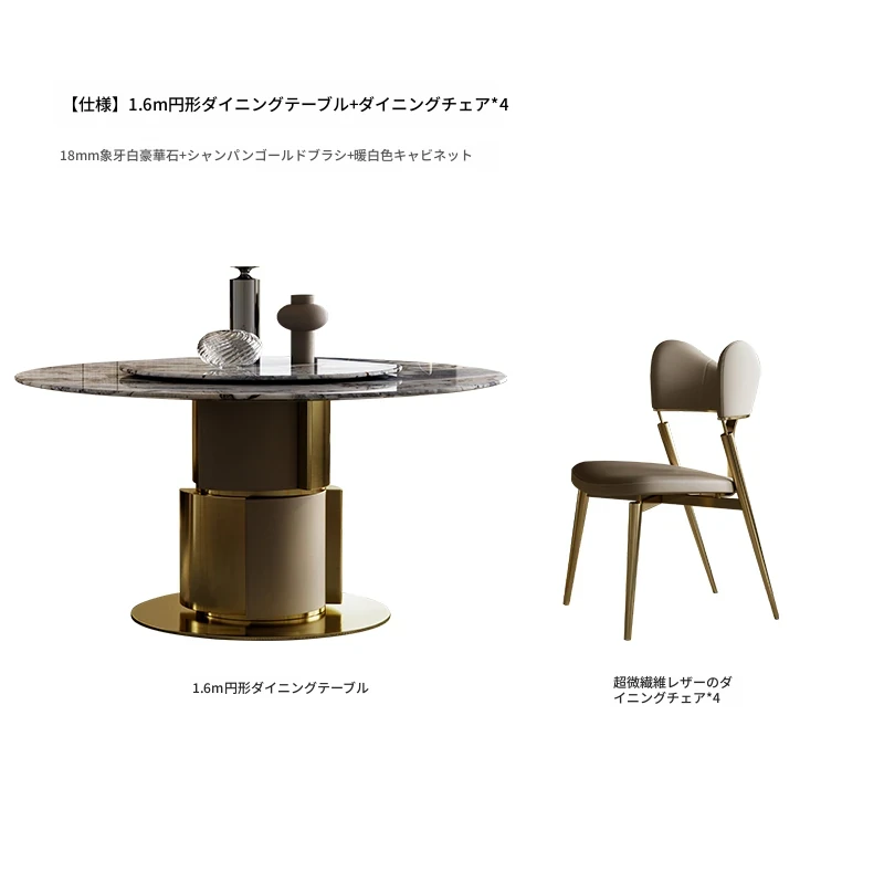 【ラウンド天然ラグジュアリー石】1.6メートルダイニングテーブル+ダイニング