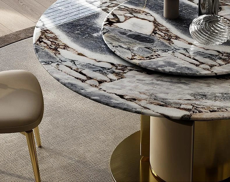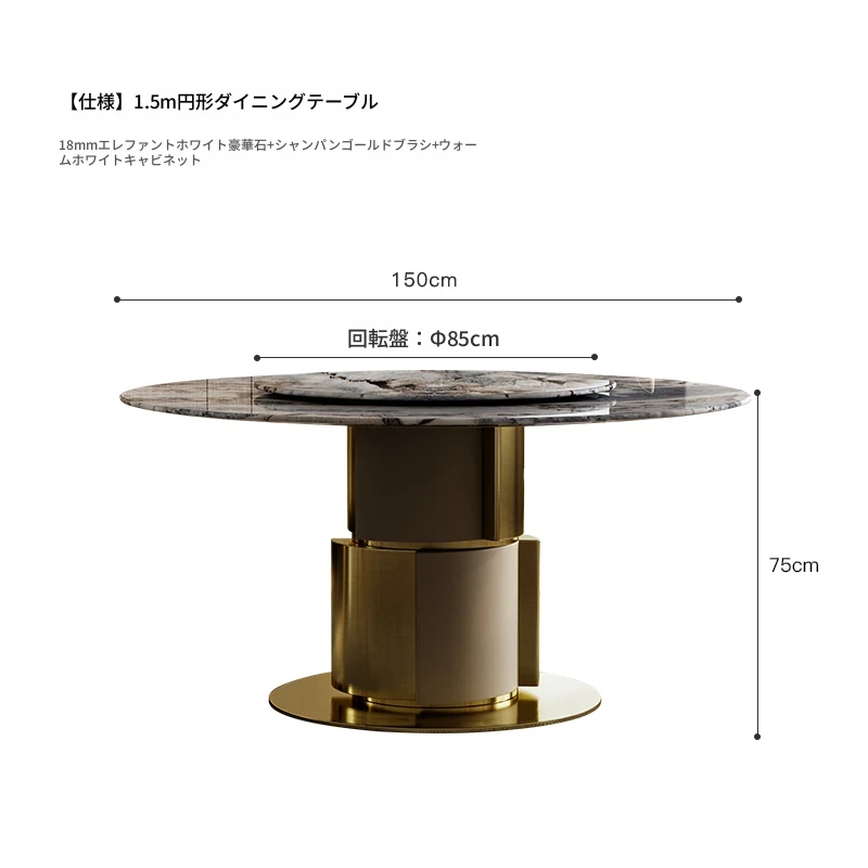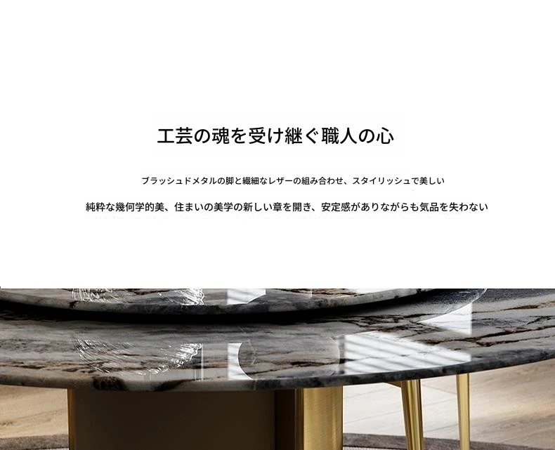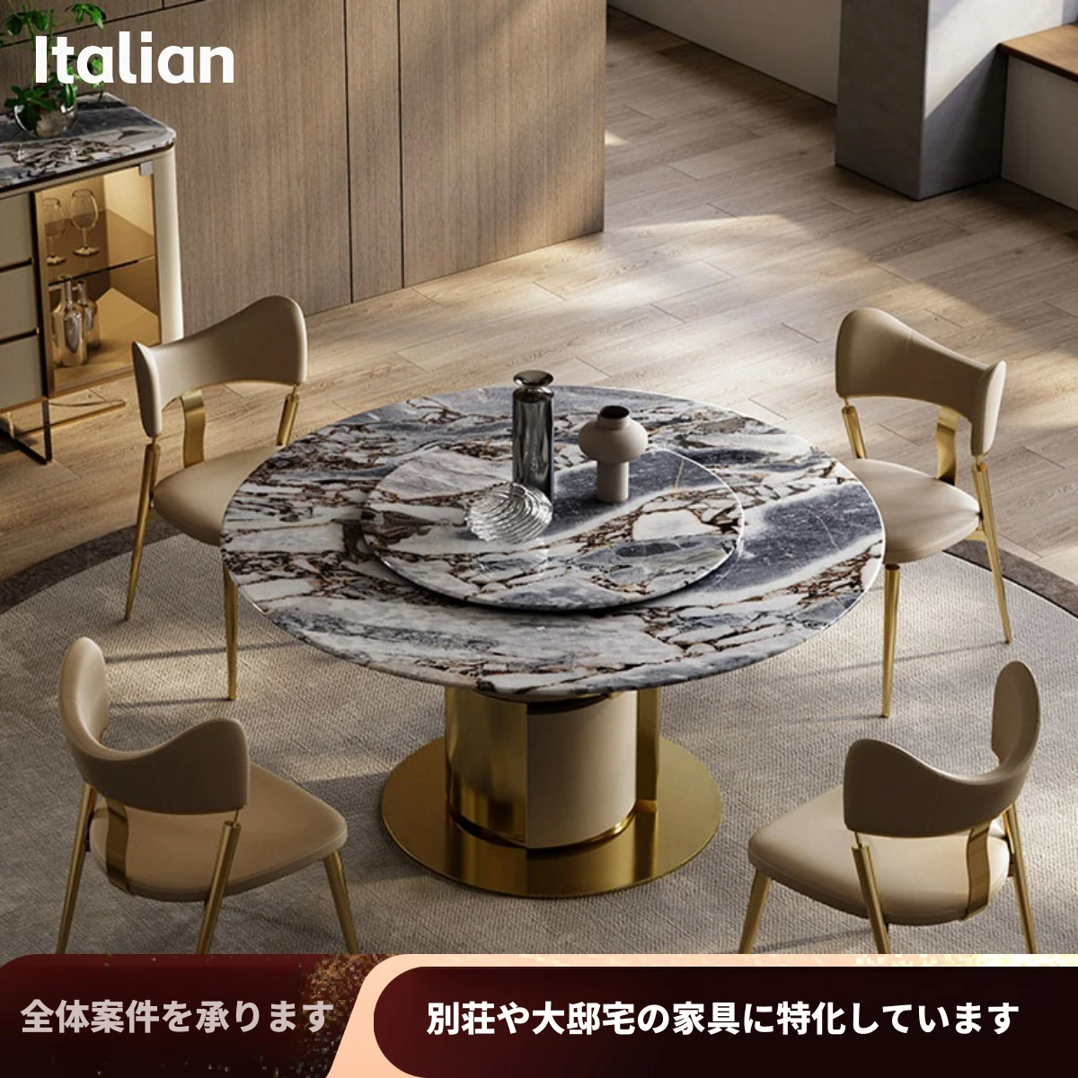 2023年新作!天然大理石ラウンド高級ダイニングテーブル、回転式デザインで贅沢な食卓を演出。洗練された雰囲気を持つ、特別なひとときをお楽しみください。