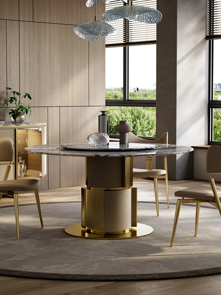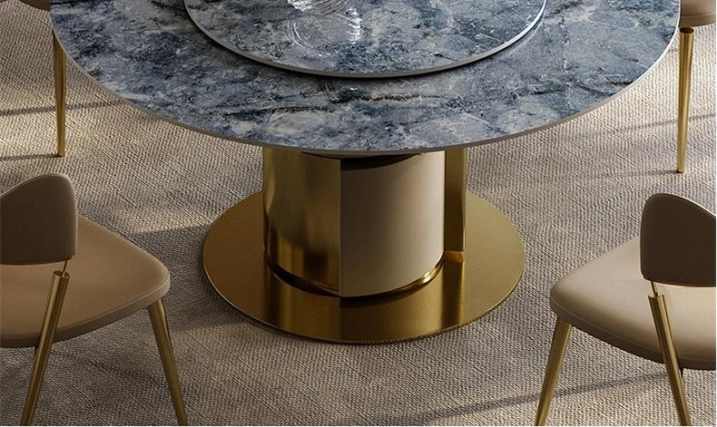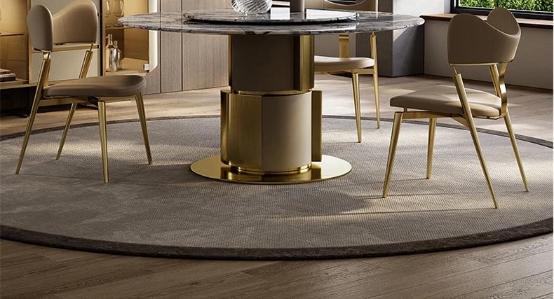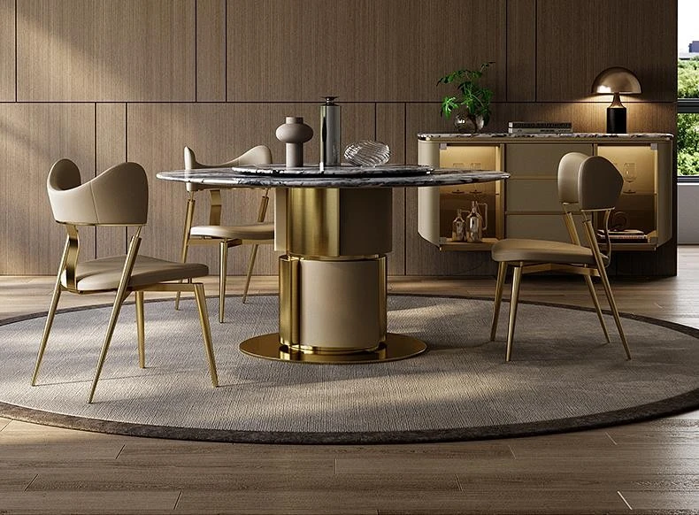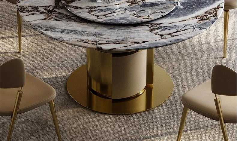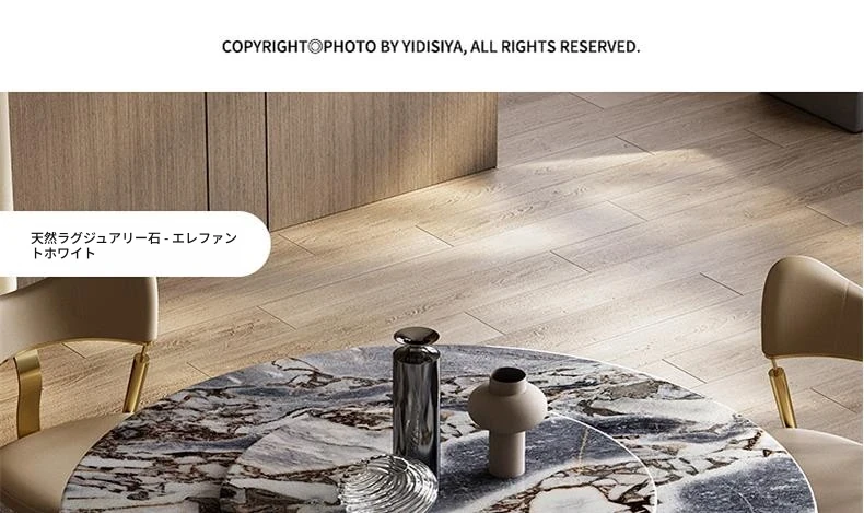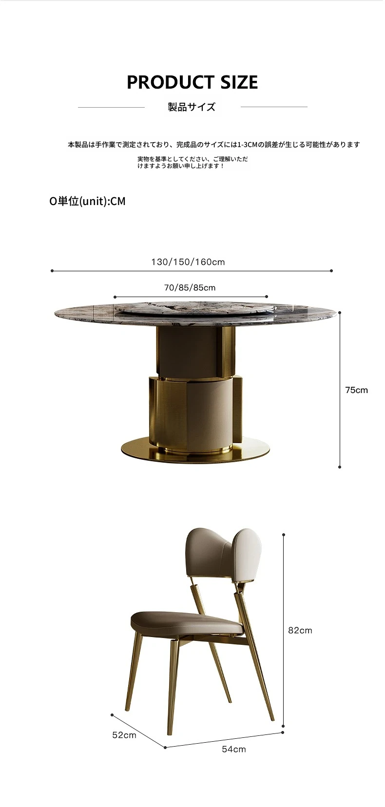 2023年新作!天然大理石ラウンド高級ダイニングテーブル、回転式デザインで贅沢な食卓を演出。洗練された雰囲気を持つ、特別なひとときをお楽しみください。