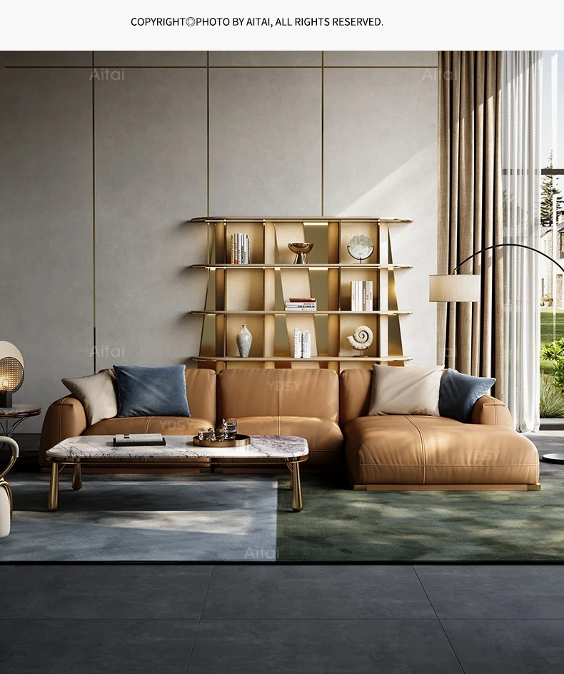 アメリカンラグジュアリー軽量ソファ!家庭用コーナータイプ、シンプルでモダンな新作。高級感溢れるローレンスソファ、イタリアンスタイルで全室コーディネートに最適!